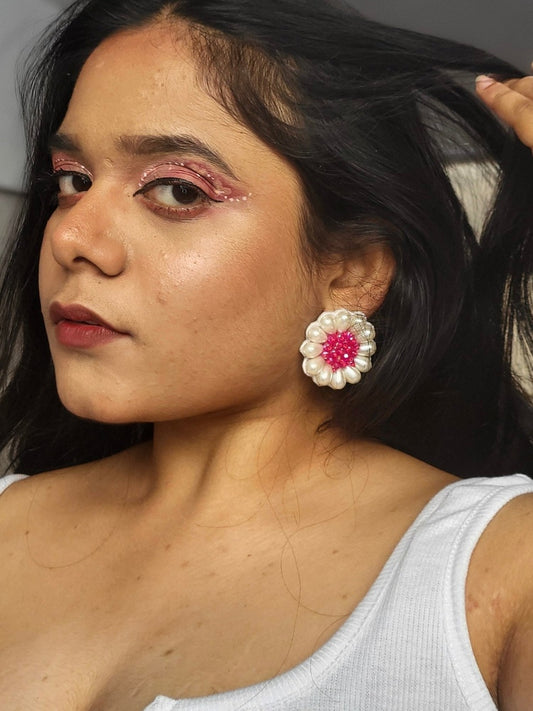Love Pink Daisy Stud Handmade Beaded Flower Earrings