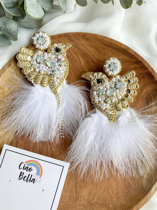 Glamorous Ivory Birdies Handmade Beaded Bird Earrings