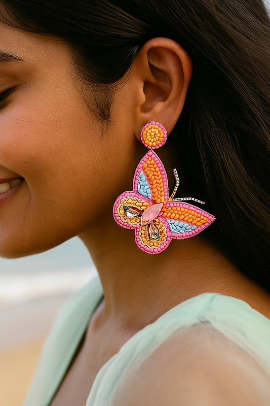 Sun-Kissed Pink Handmade Beaded Butterfly Earrings