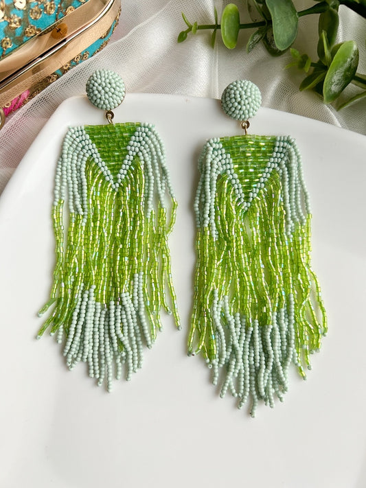Luxe Minty Green Handmade Beaded Tassel Earrings