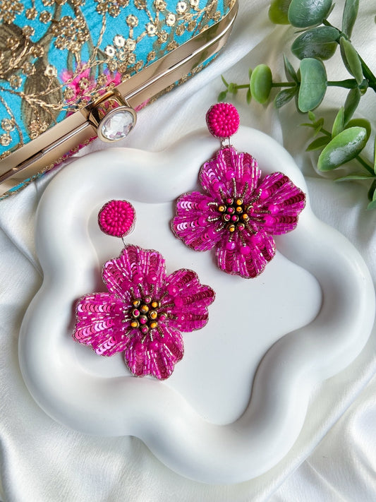Luxe Rosey Handmade Beaded Tassel Earrings