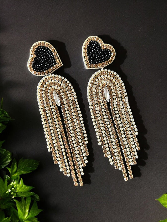 Luxe Midnight Black Handmade Beaded Tassel Earrings