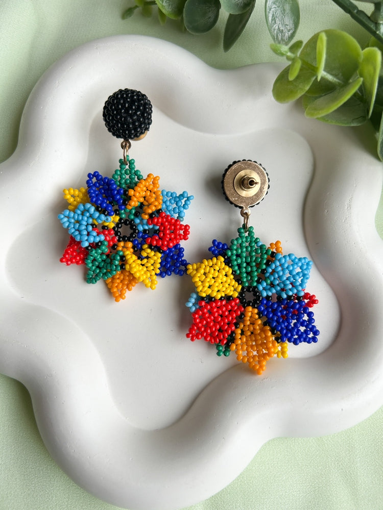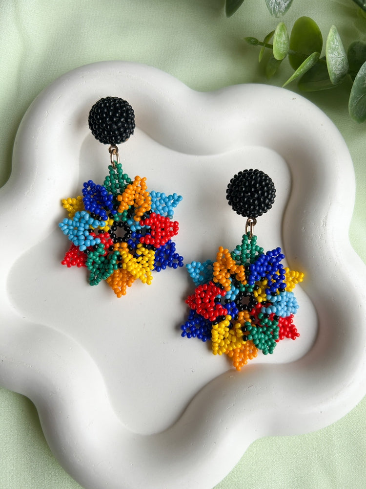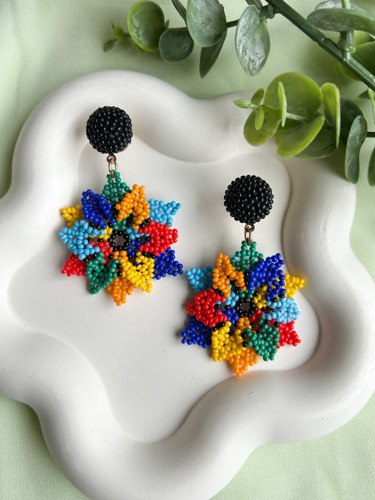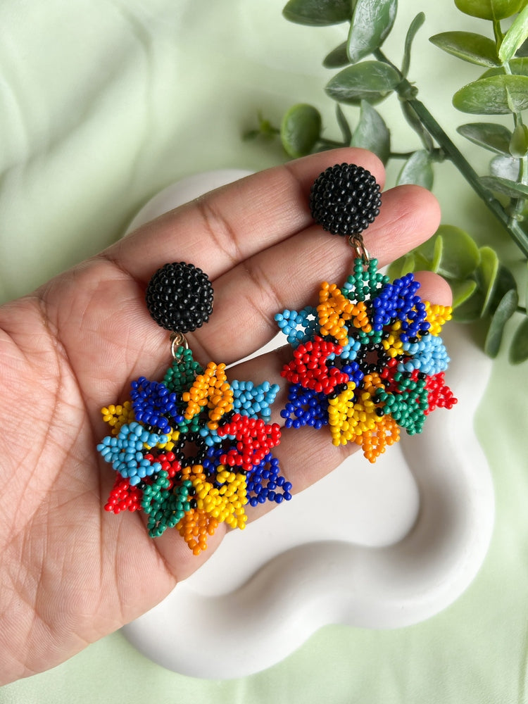 Blossoming Rainbow Flower Handmade Beaded Earrings
