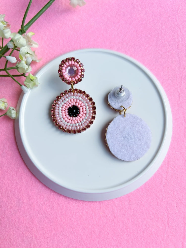 Blush Pink Mini Evil Eye Handmade Beaded Earrings