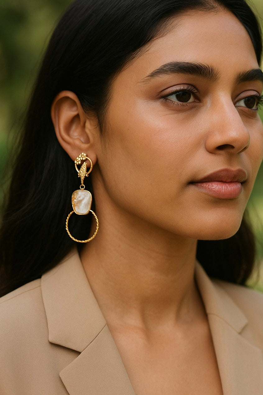 Please Note: This design features natural Mother of Pearl stones. Due to the organic nature of these stones, each piece is unique. Please expect variation in size, shape, colour in each stone.