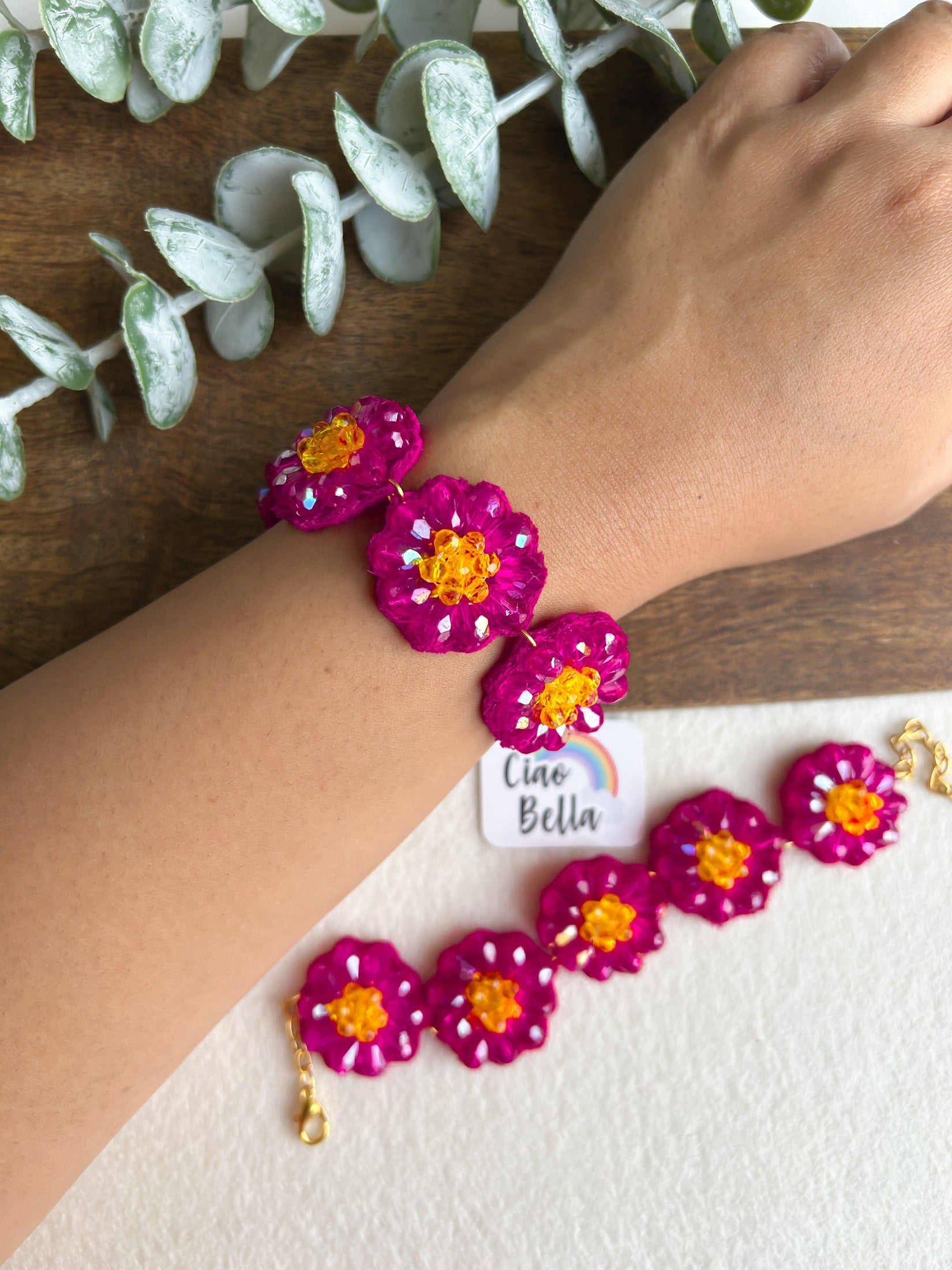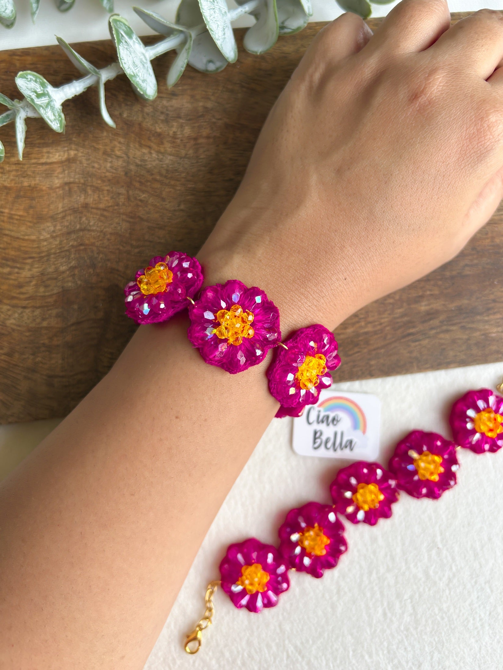 Daisy Dream Pink Handmade Beaded Bracelet