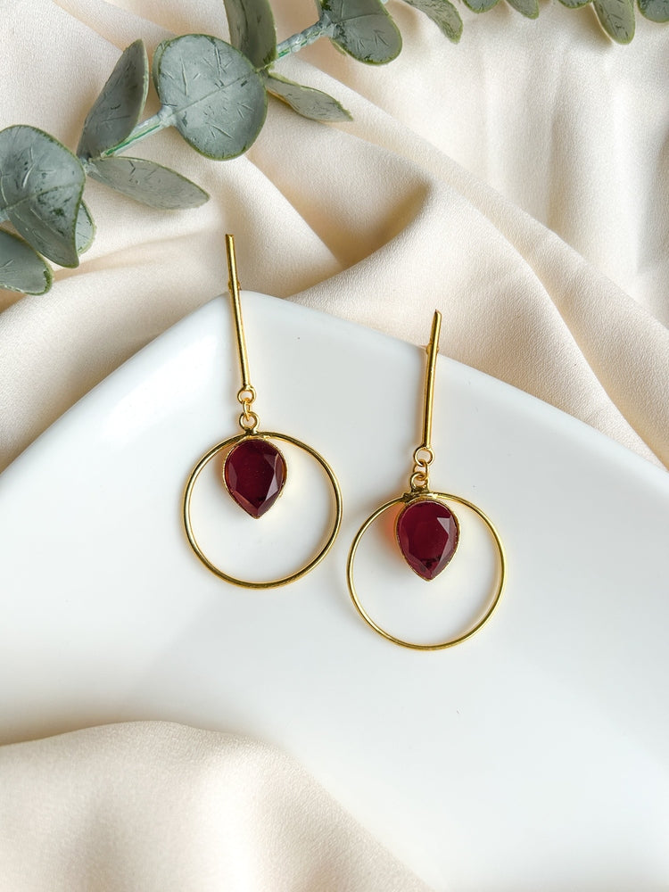 Deep Red Monalisa Teardrop Handmade Brass Earrings