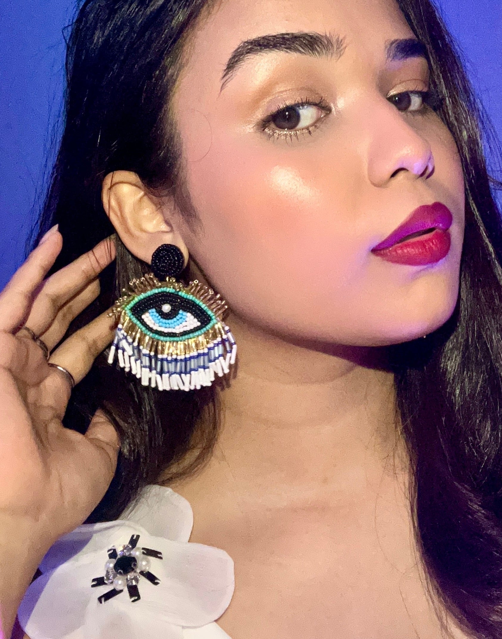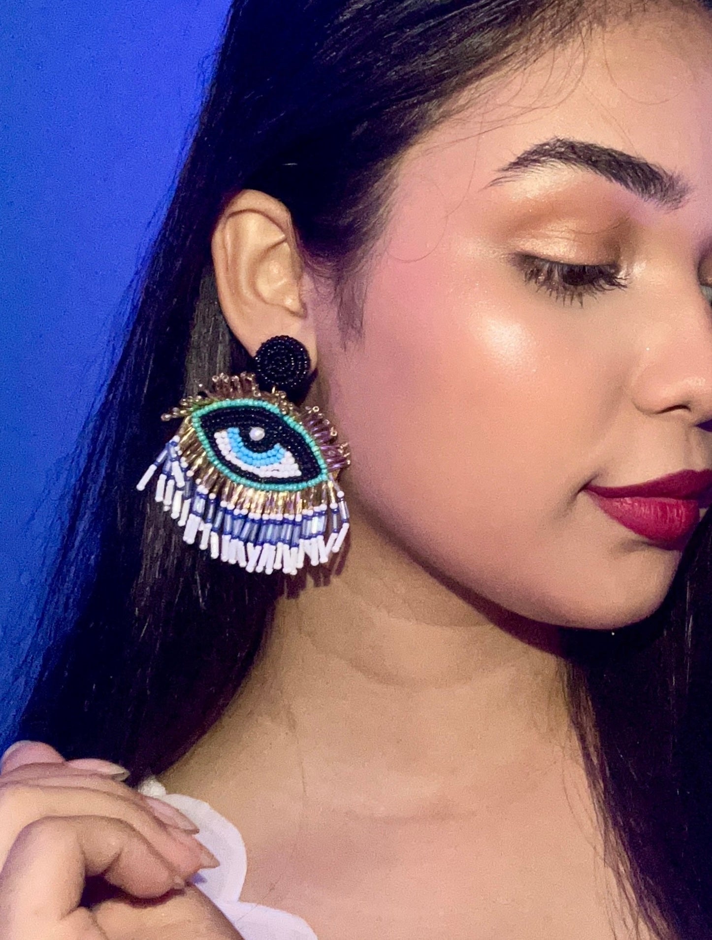 Evil Eye Elegance Handmade Beaded Earrings