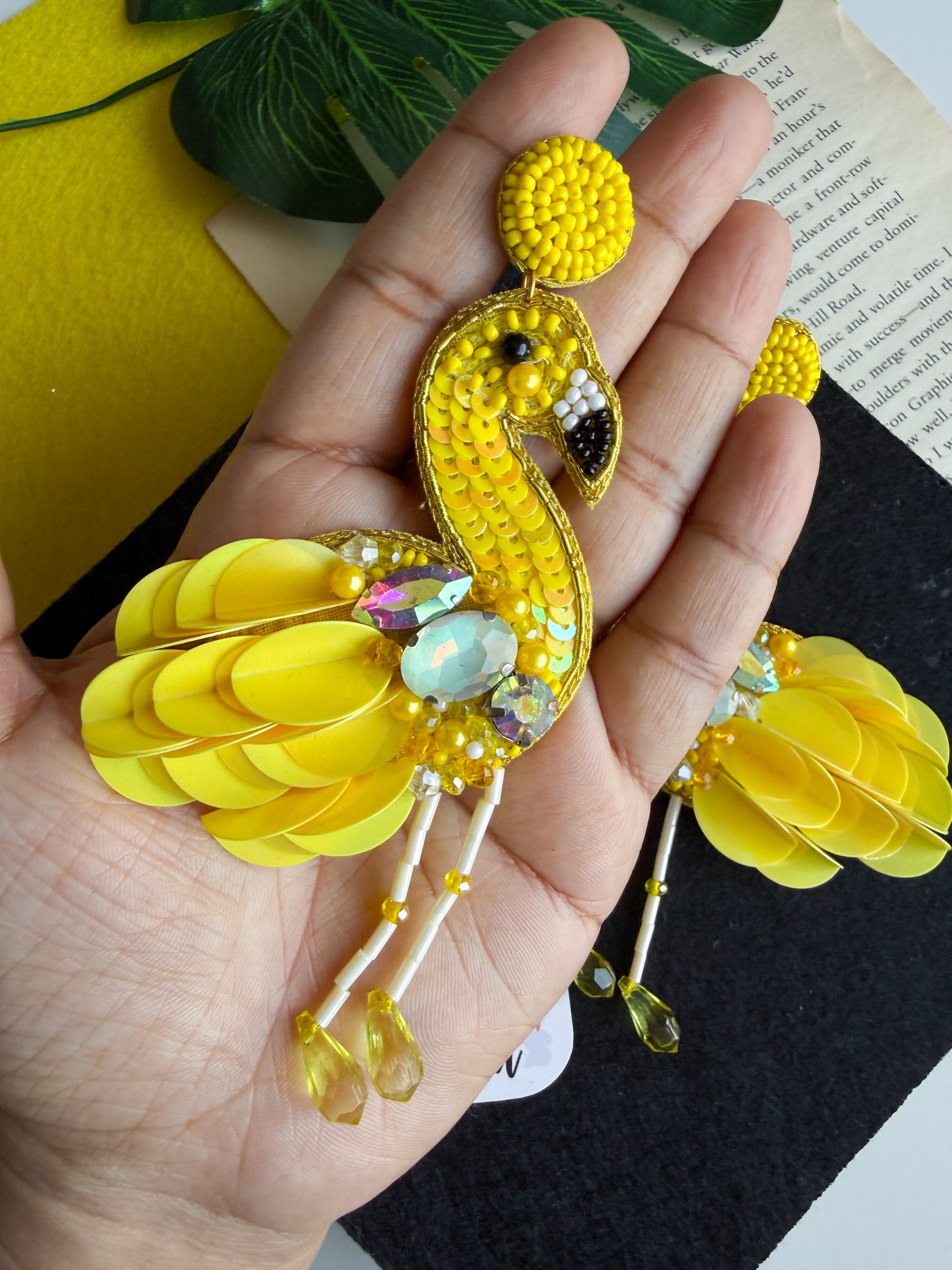 Flamazing Flamingo Yellow Handmade Beaded Bird Earrings