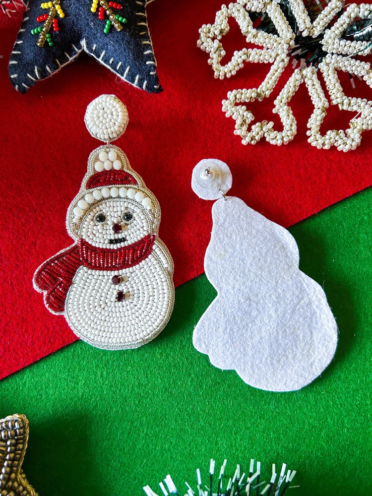 Frosty - The Snowman Handmade Beaded Christmas Earrings