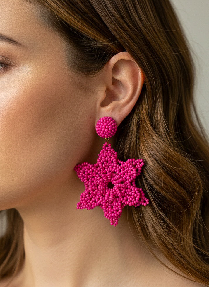 Fuchsia Delicate Snowflake Handmade Beaded Earrings