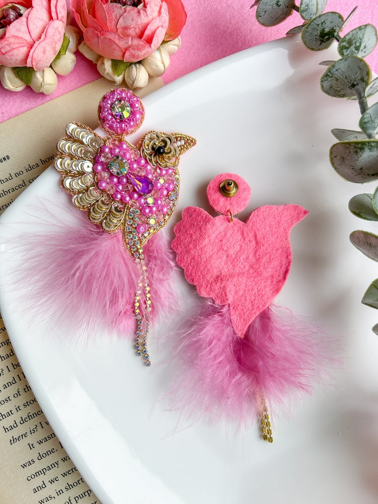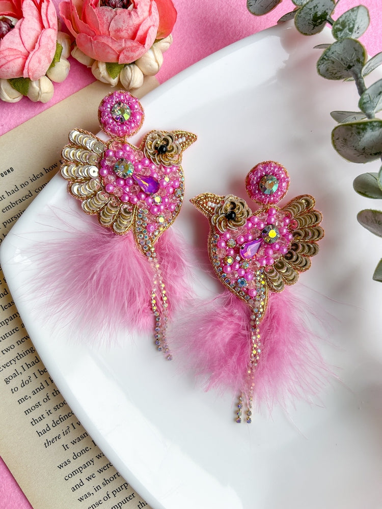 Glamorous Pink Birdies Handmade Beaded Bird Earrings