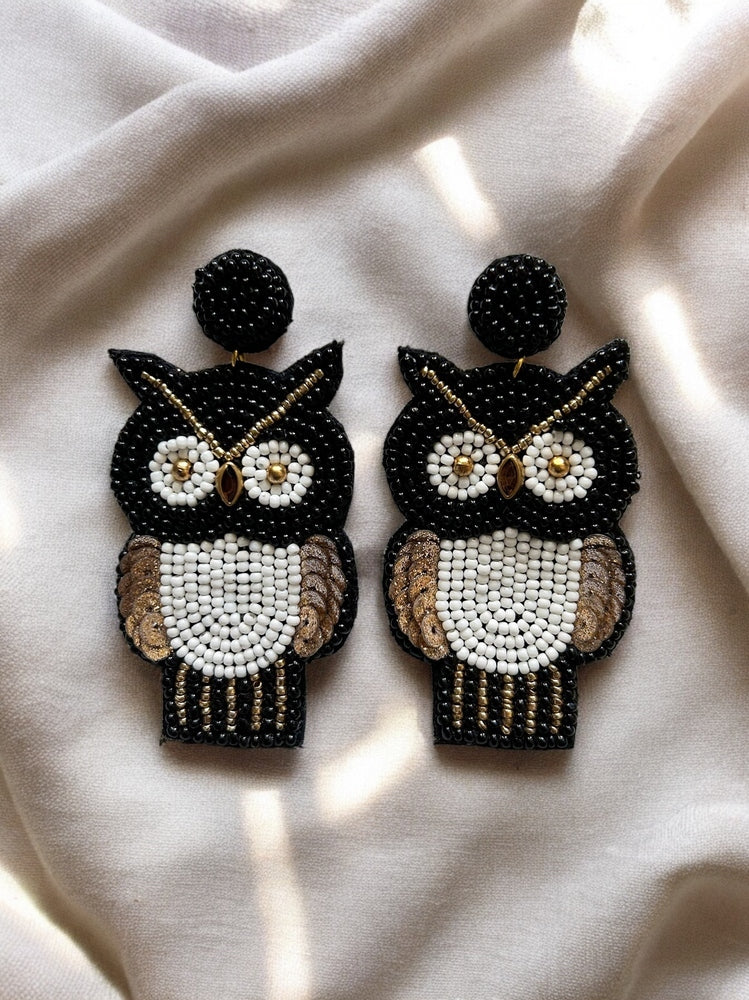 Golden Owl Handmade Beaded Bird Earrings
