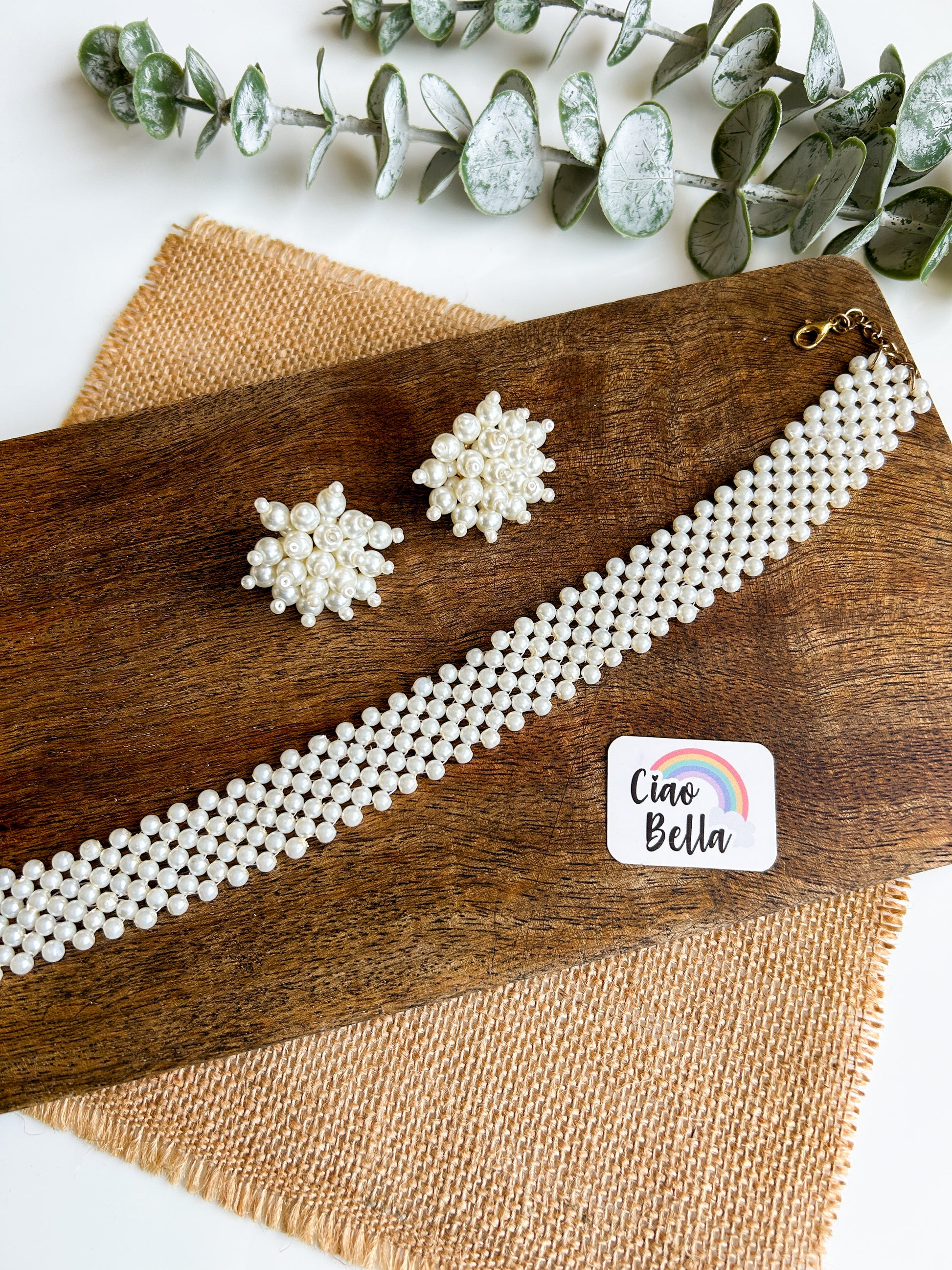 Ira Pearl Handmade Choker Necklace + Earrings Set