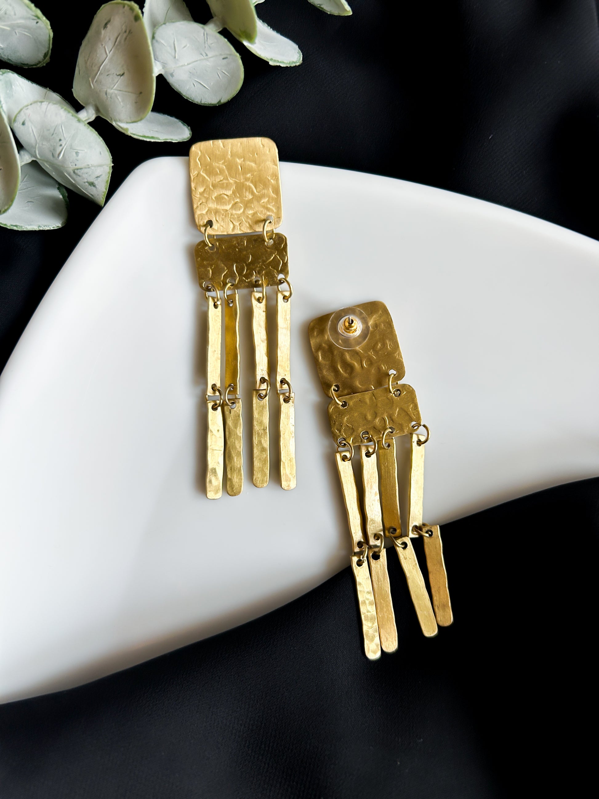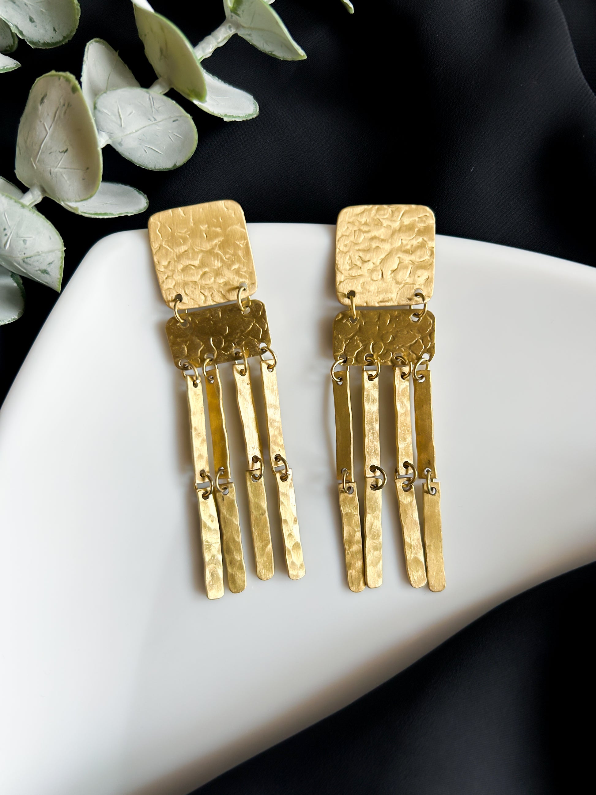Meet the Juno Brass Drops — bold, handcrafted earrings that make a statement with every sway. Featuring textured brass squares and dangling hammered bars, these earrings are a celebration of movement, light, and artisan craftsmanship.