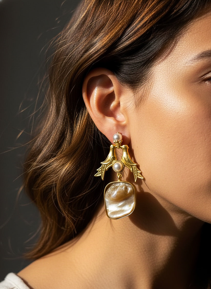 Please Note: This design features natural Mother of Pearl stones. Due to the organic nature of these stones, each piece is unique. Please expect variation in size, shape, colour in each stone.