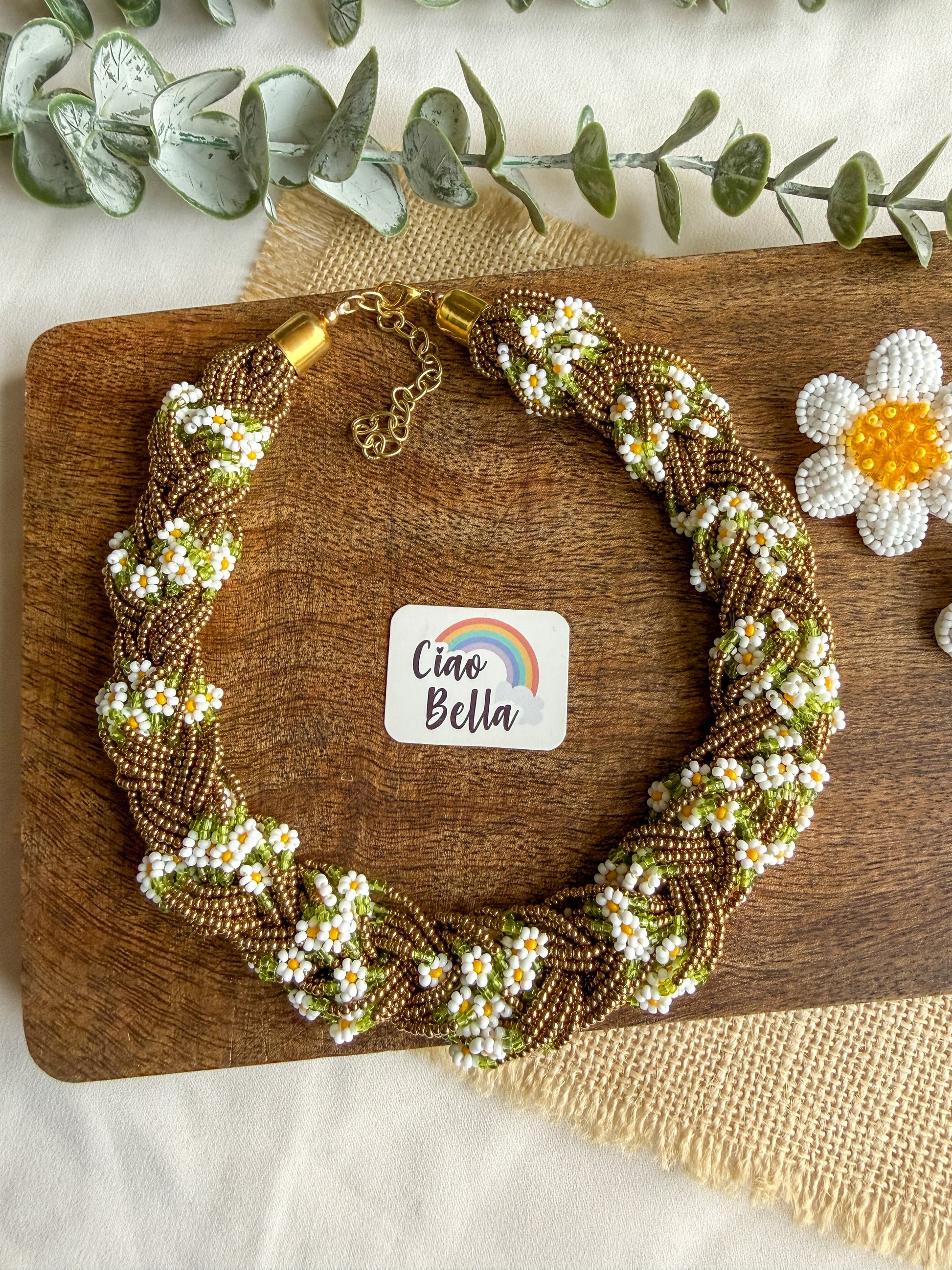 Luxe Flora Antique Brown Gold Handmade Beaded Necklace + Earrings Set