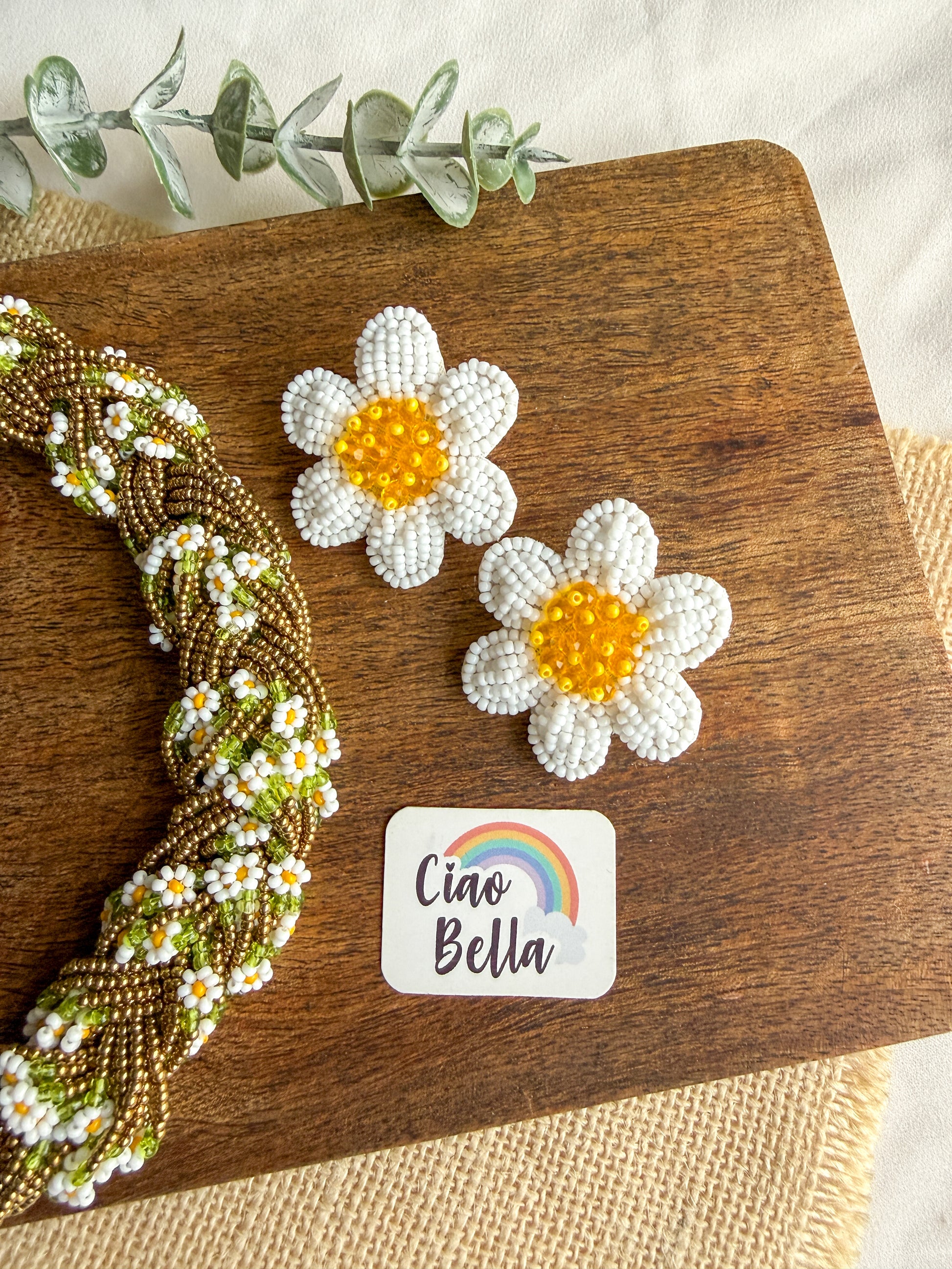 Earrings: Stud Earrings, Length: 4.5 CM; Width: 4.5 CM, Material: Beads Embroidery, Felt Backing