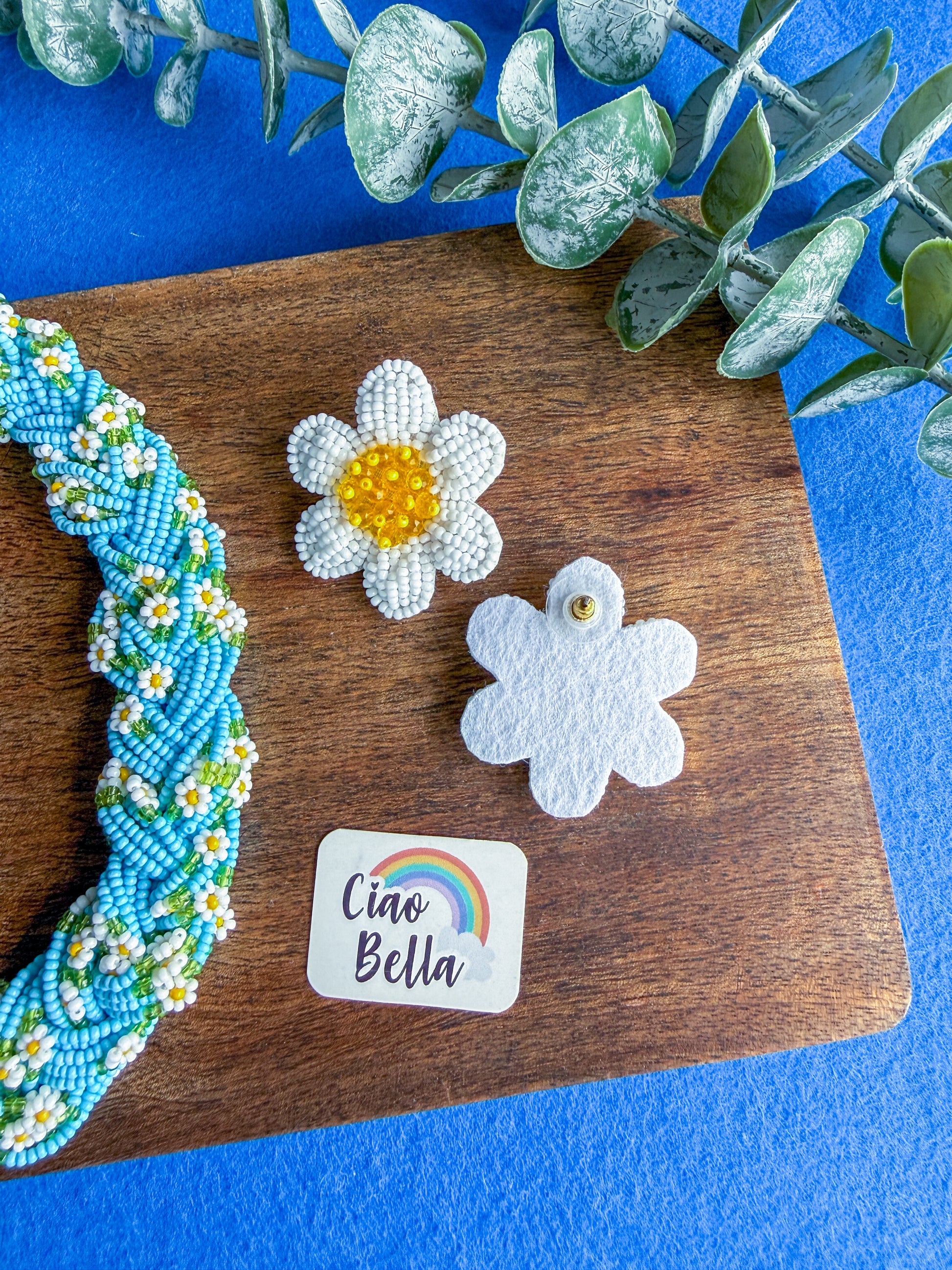 Earrings: Stud Earrings, Length: 4.5 CM; Width: 4.5 CM, Material: Beads Embroidery, Felt Backing