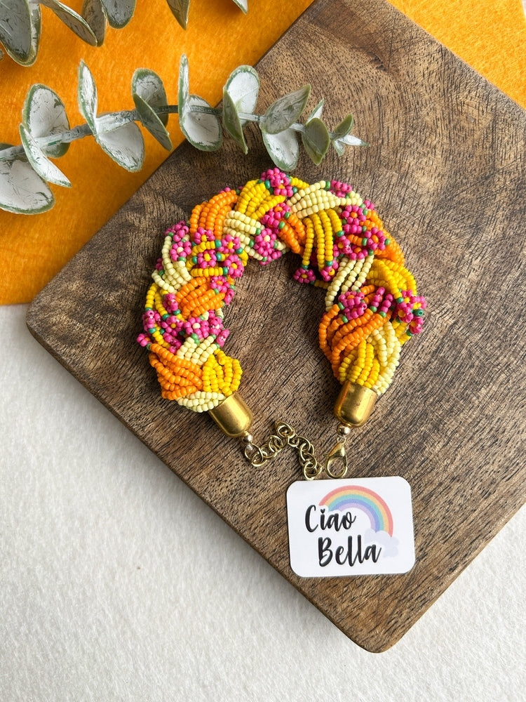 Luxe Flora Marigold Handmade Beaded Bracelet + Ring Combo