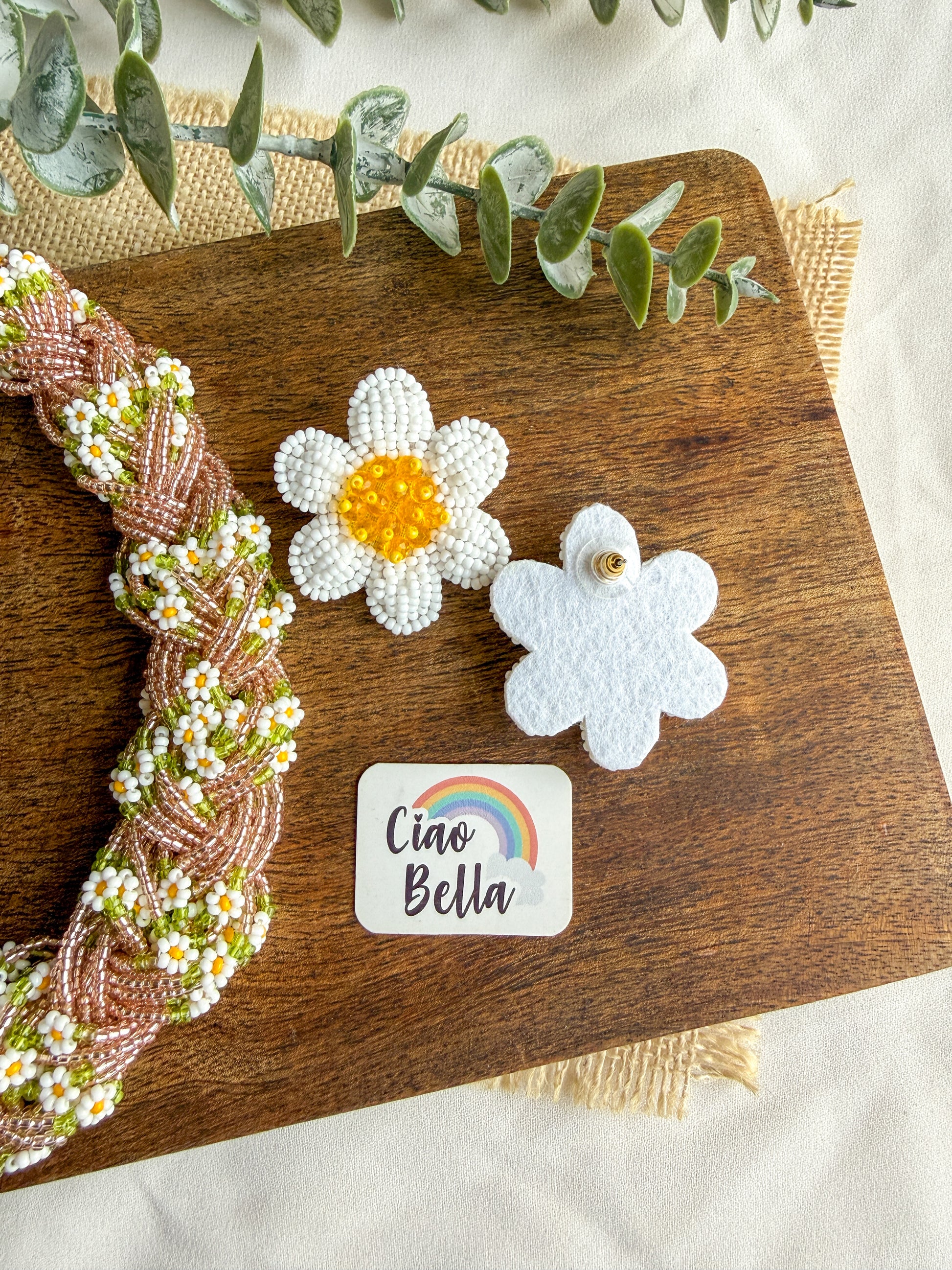 Earrings: Stud Earrings, Length: 4.5 CM; Width: 4.5 CM, Material: Beads Embroidery, Felt Backing