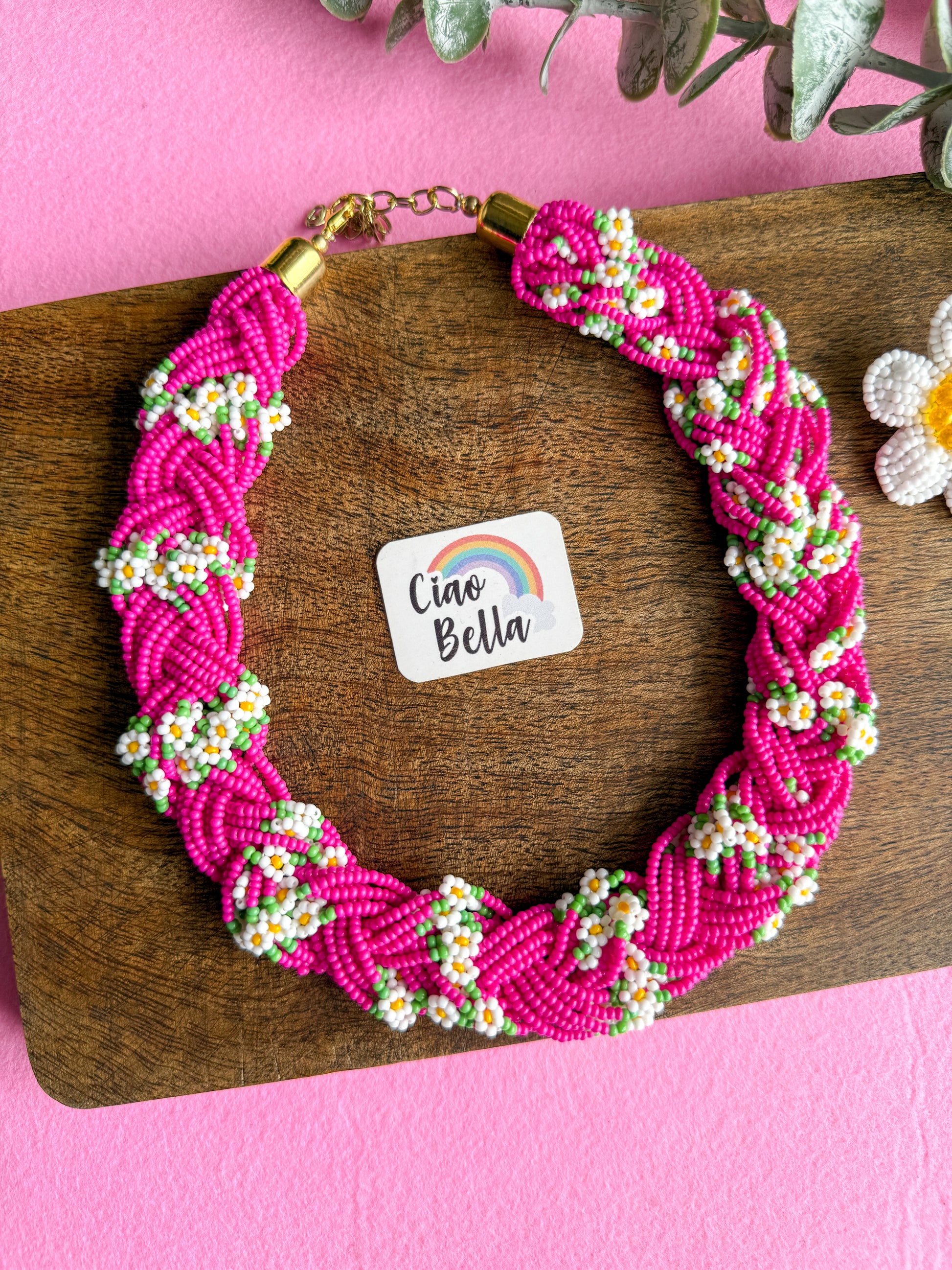Luxe Flora Rose Pink Handmade Beaded Necklace + Earrings Set