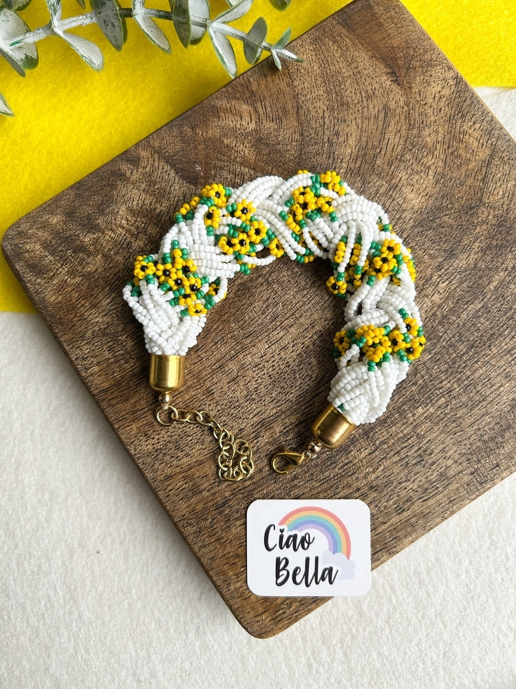 Luxe Flora Sunflower Handmade Beaded Bracelet + Ring Combo