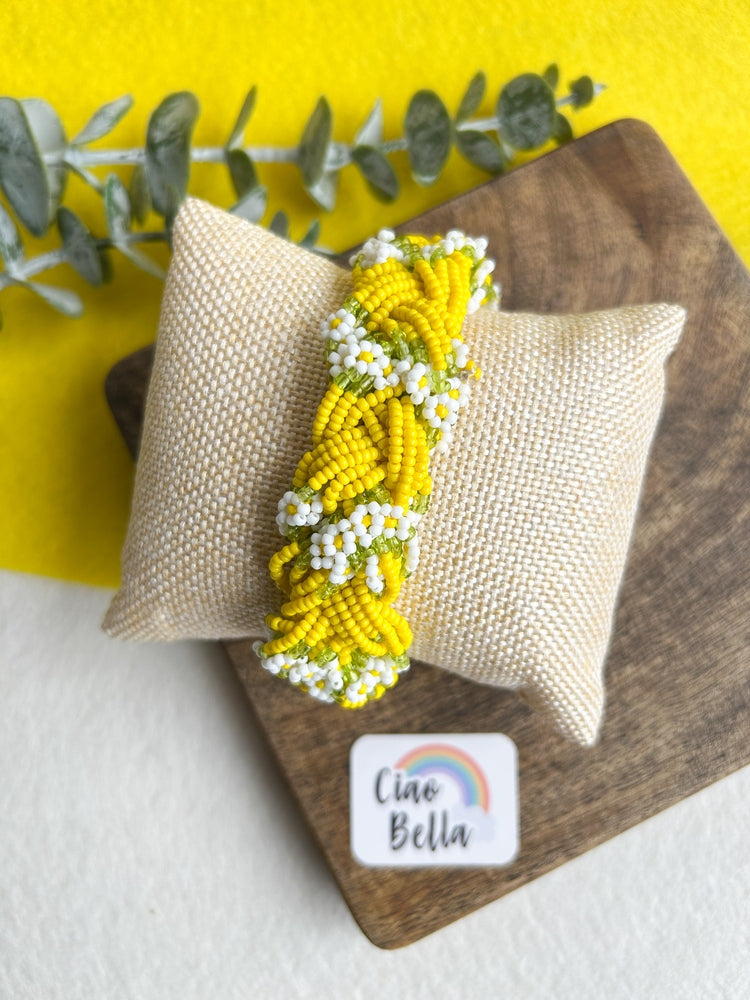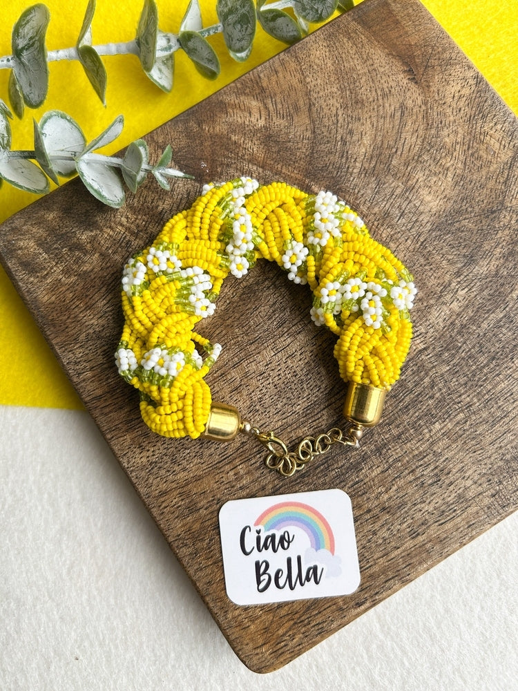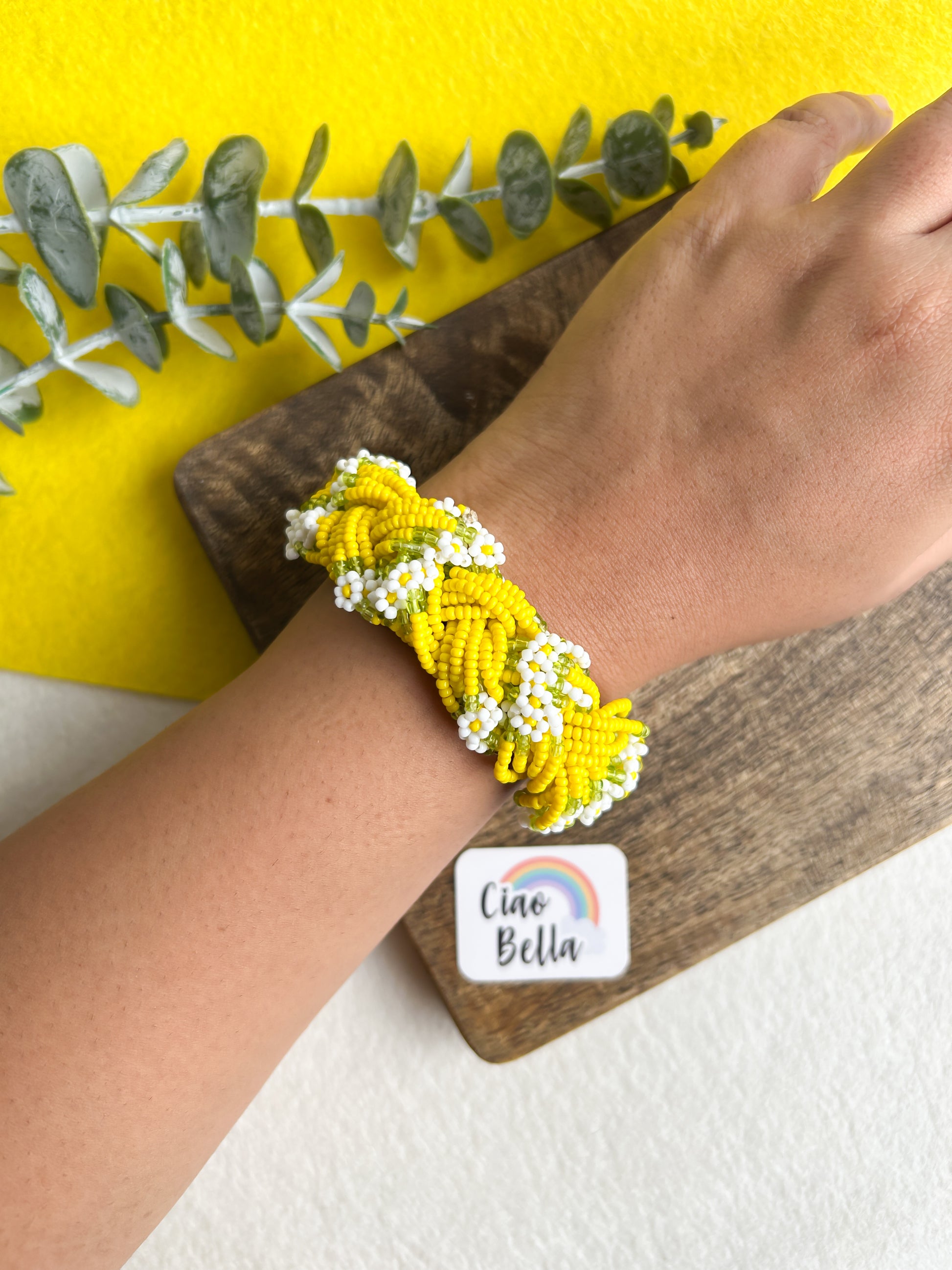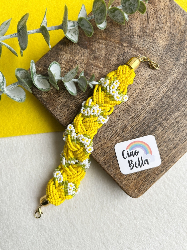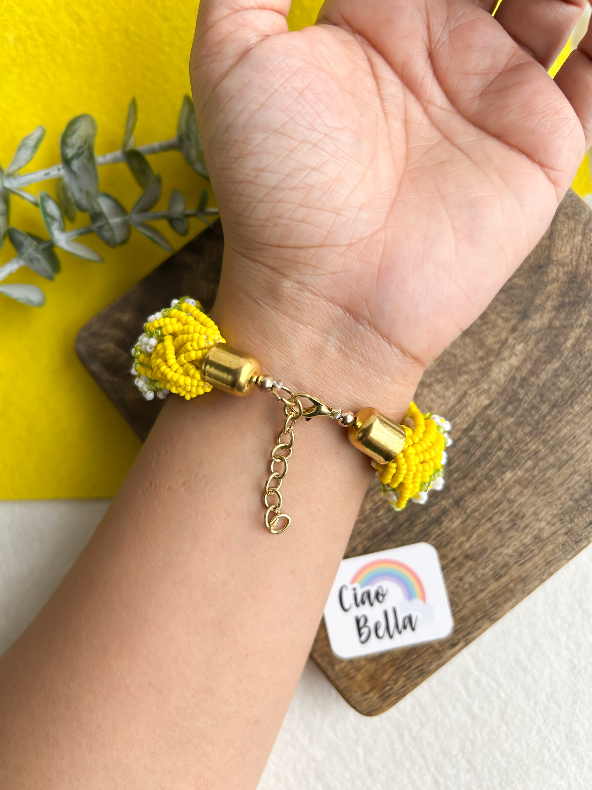 Luxe Flora Yellow Handmade Beaded Bracelet