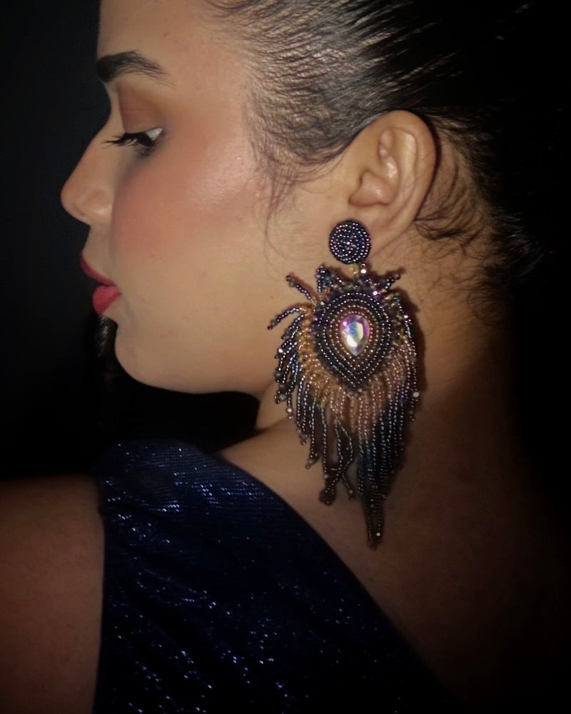 Meher Peacock Handmade Beaded Bird Feather Tassel Earrings