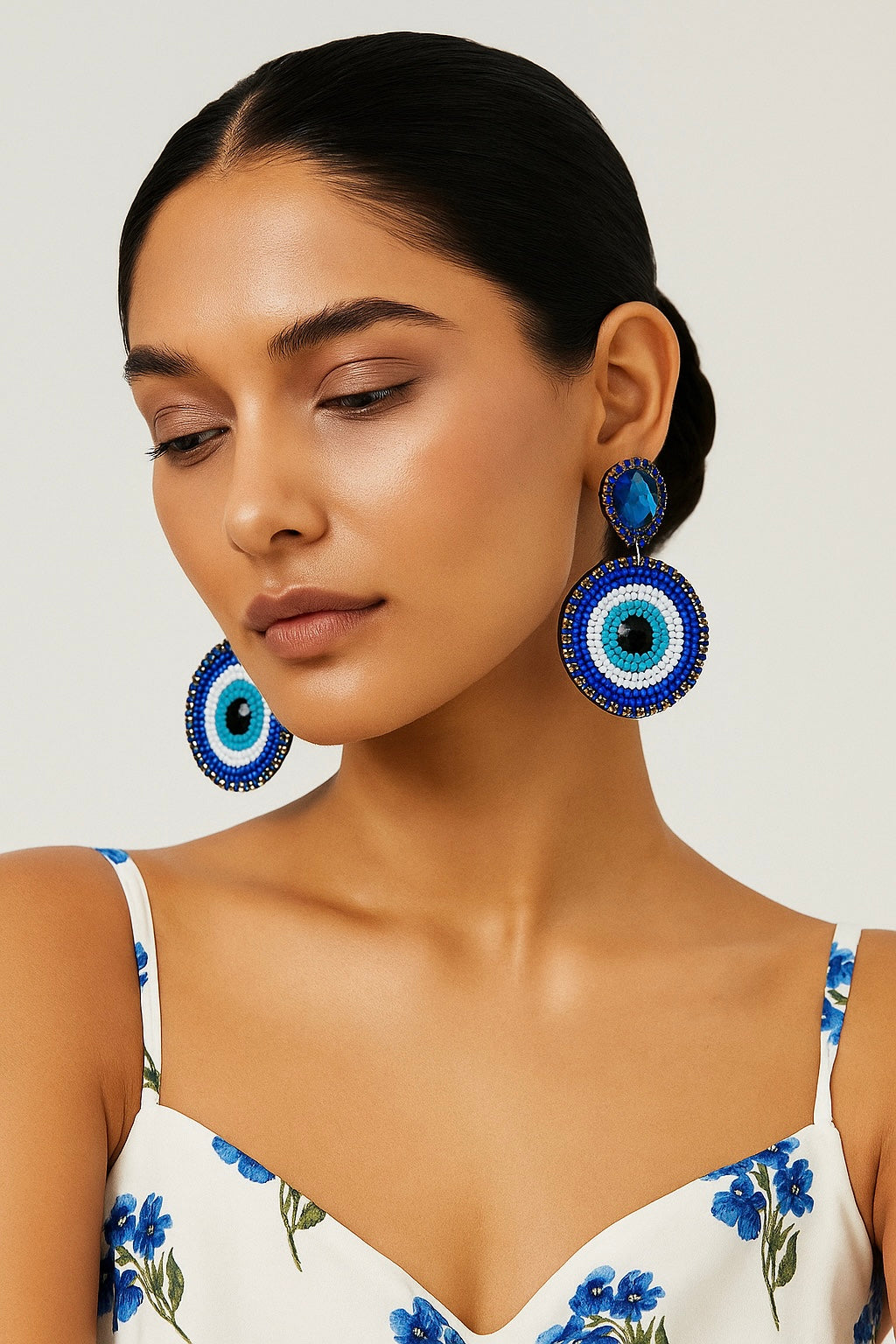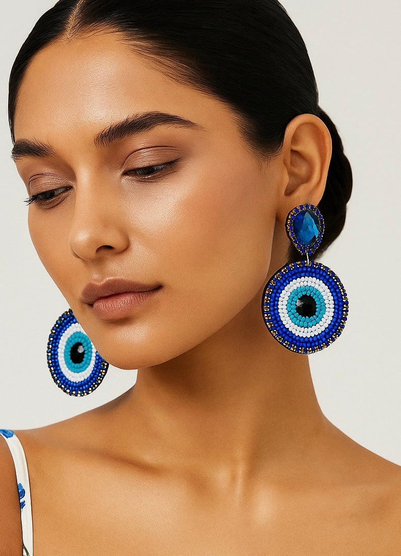 Put the bad vibes on notice with these Mystic Evil Eye Earrings! These gorgeous blue round beauties will keep you safe from harm―while looking sassy and stylish. Go ahead - put your best fashionable foot forward and protect your aura too!