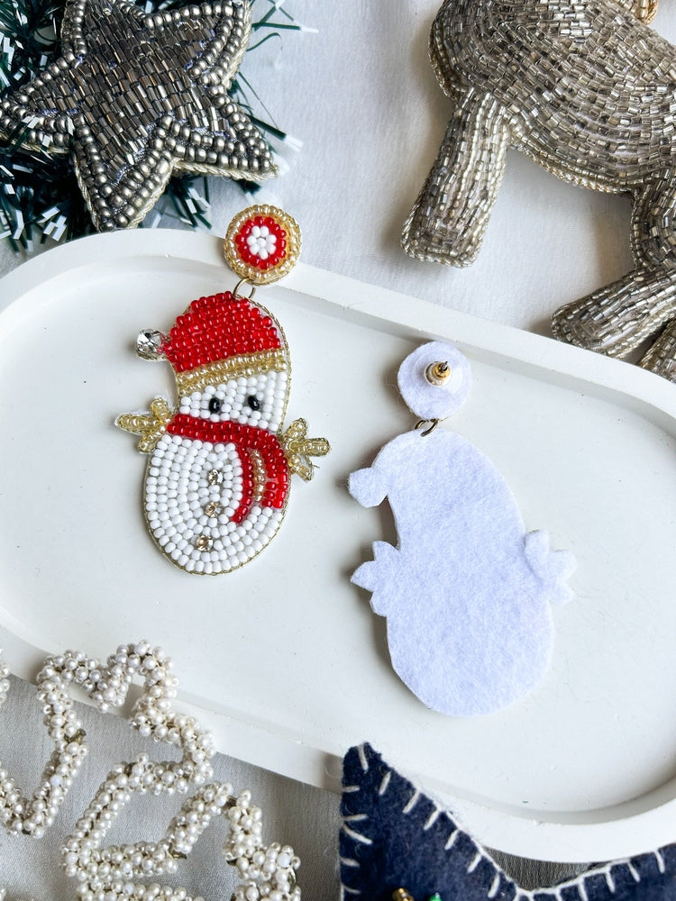 Olaf The Snowman Handmade Beaded Christmas Earrings