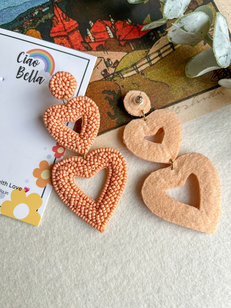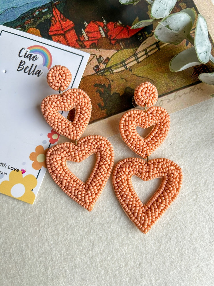 Peach Love Heart Handmade Beaded Earrings