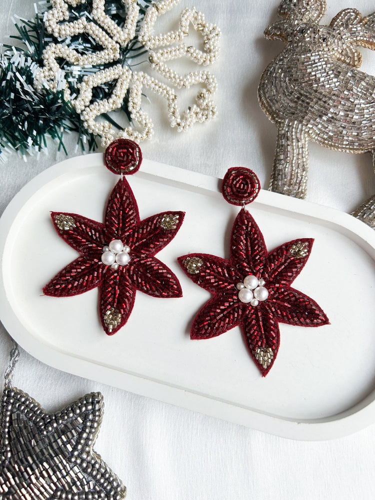 Poinsettia Petals Handmade Beaded Christmas Flower Earrings