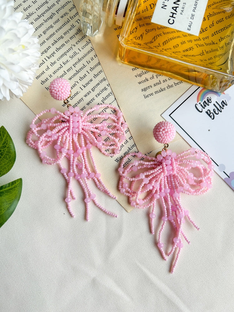 Pookie Bow (Baby Pink) Handmade Beaded Earrings