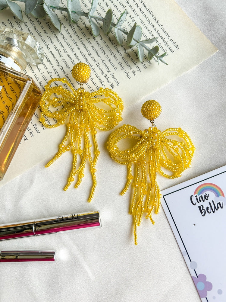 Pookie Bow (Yellow) Handmade Beaded Earrings