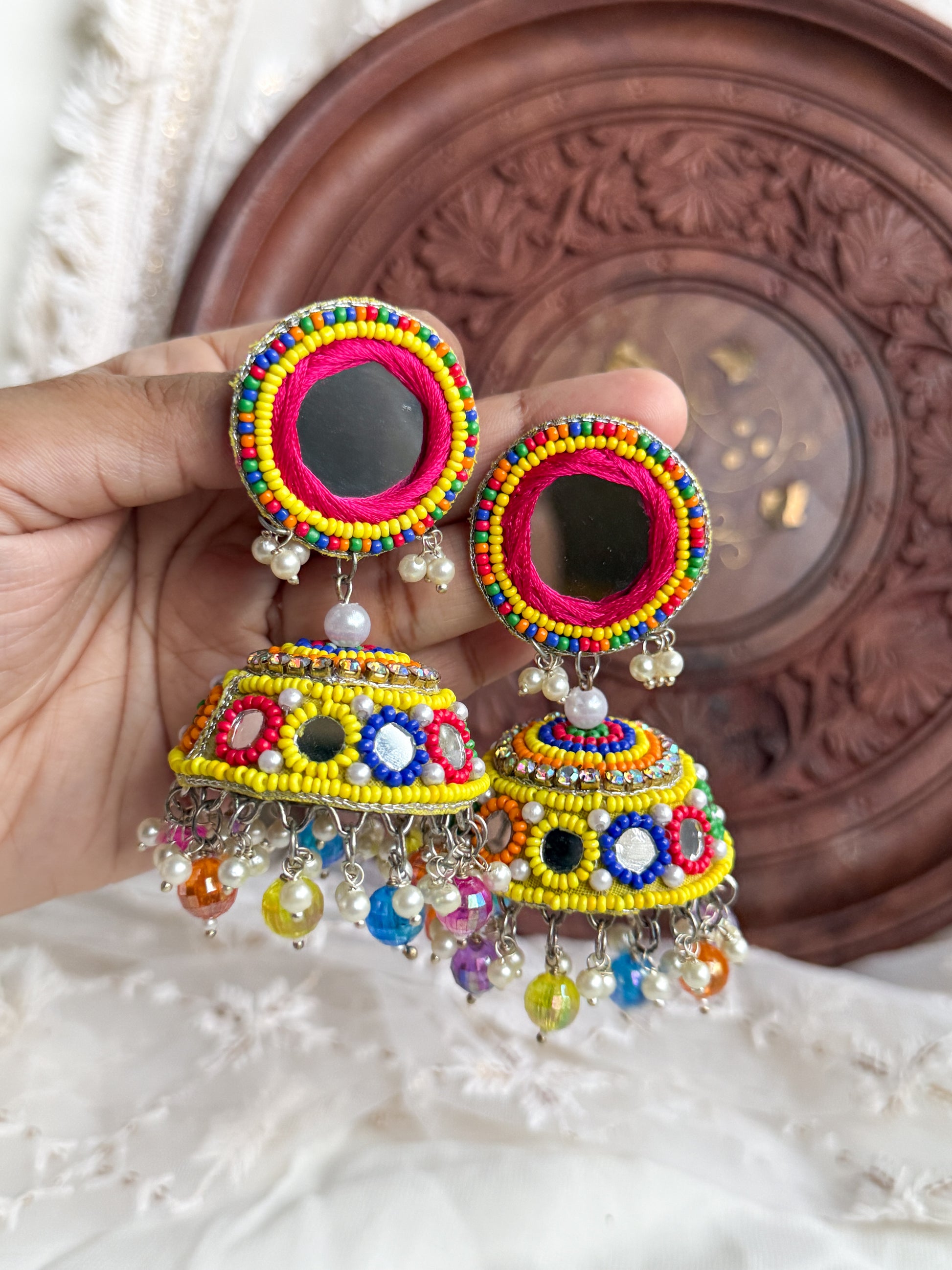 Rangili Mirror Handmade Beaded Jhumka Earrings