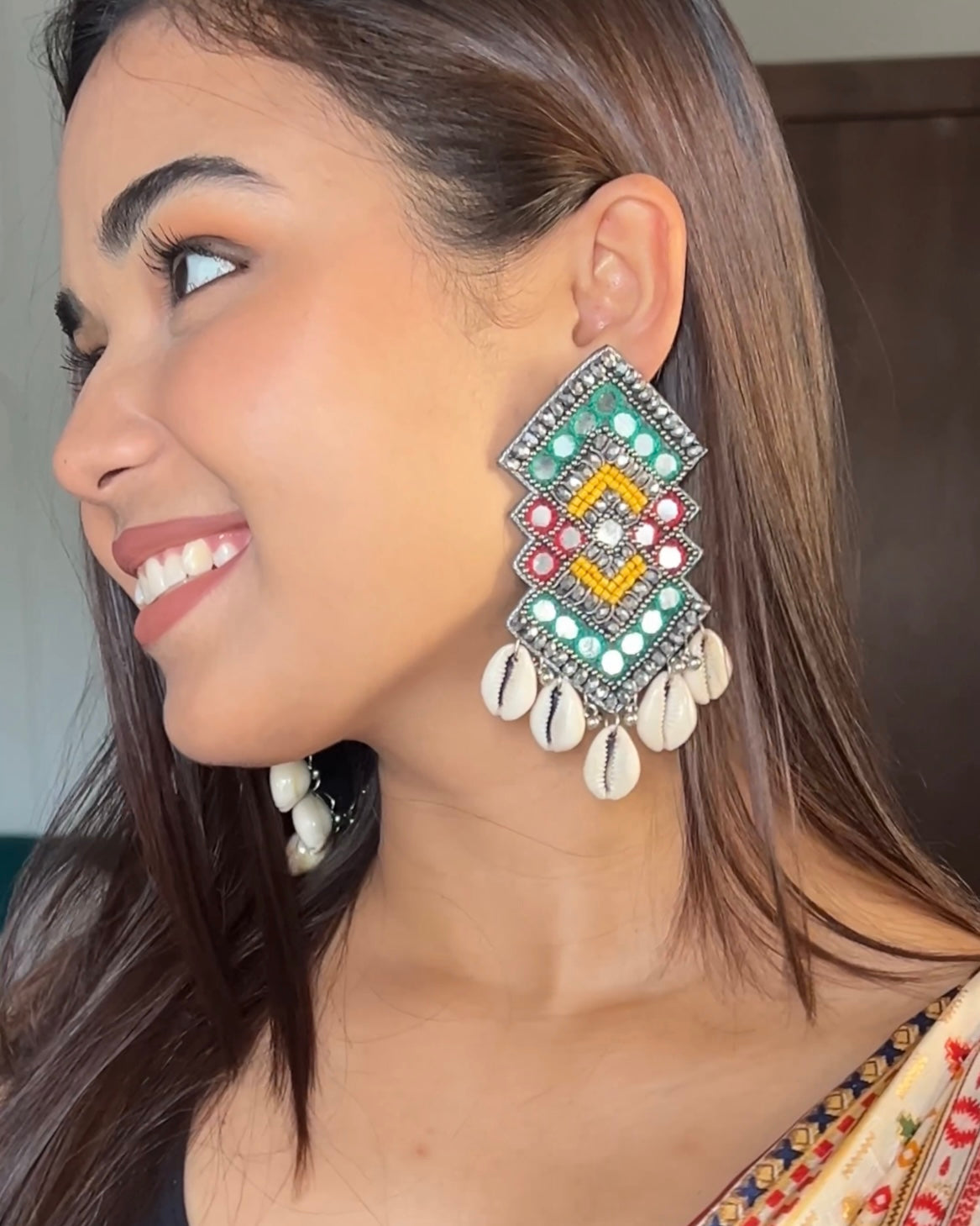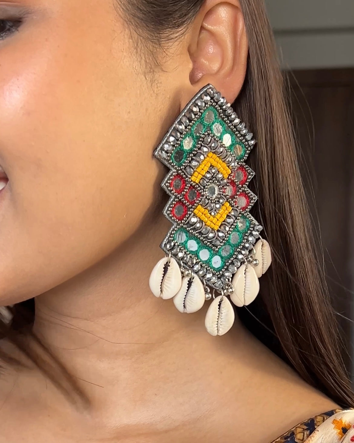 RangRaas Mirror Handmade Beaded Earrings
