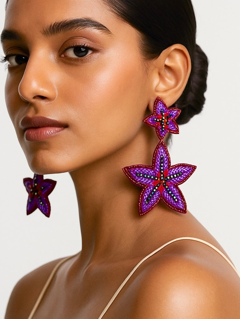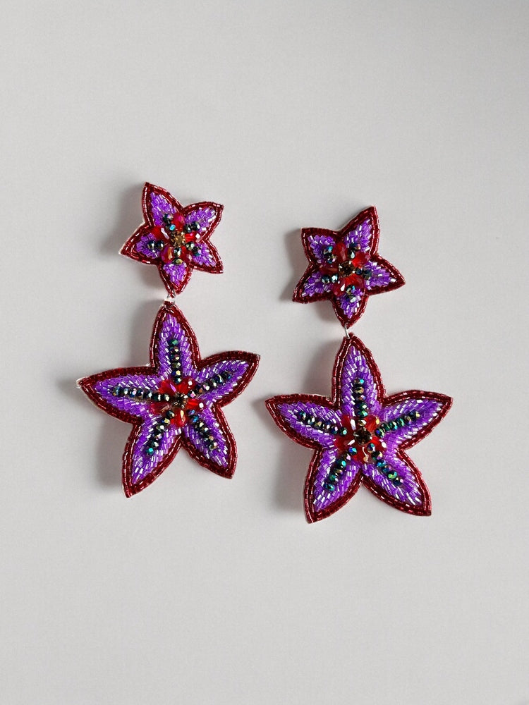 Feel like royalty with these one-of-a-kind Regal Starfish Jewels Earrings! Crafted with a unique purple and red hue, these earrings will add a regal look to your outfit, no matter if you're a princess or a pauper. Trust us, you'll feel like royalty with these earrings!