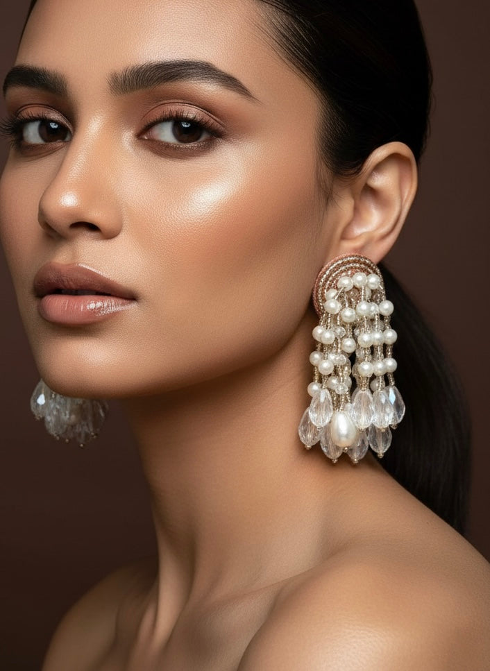 Rosalie Pearl Fall Handmade Beaded Earrings