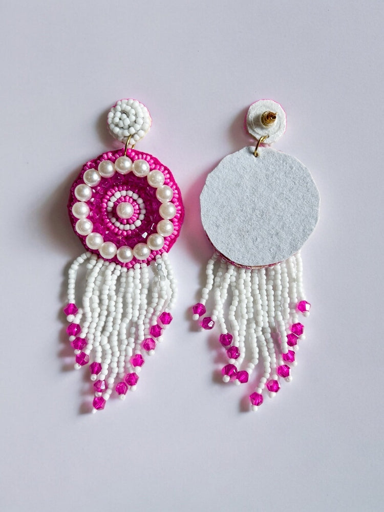 Rosey Tassel Handmade Beaded Earrings