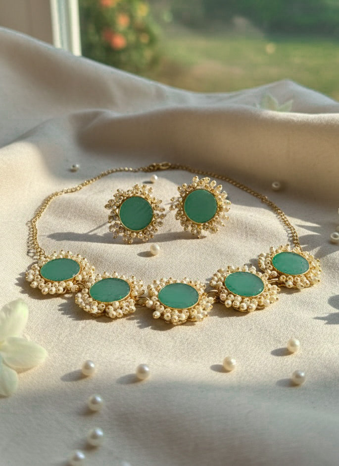 Please Note: This design features natural stones. Due to the organic nature of these stones, each piece is unique. Please expect variation in size, shape, colour in each stone.