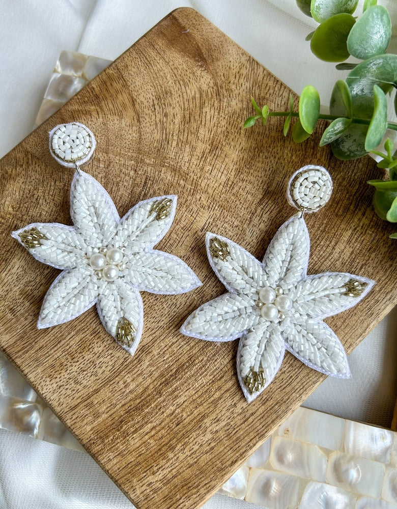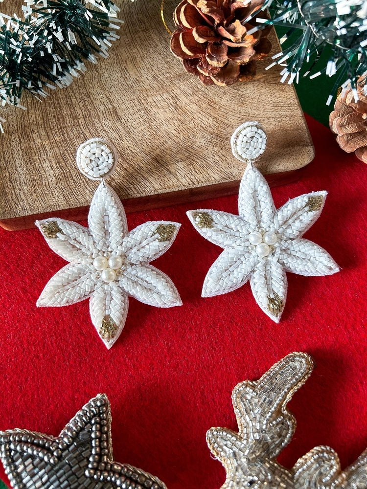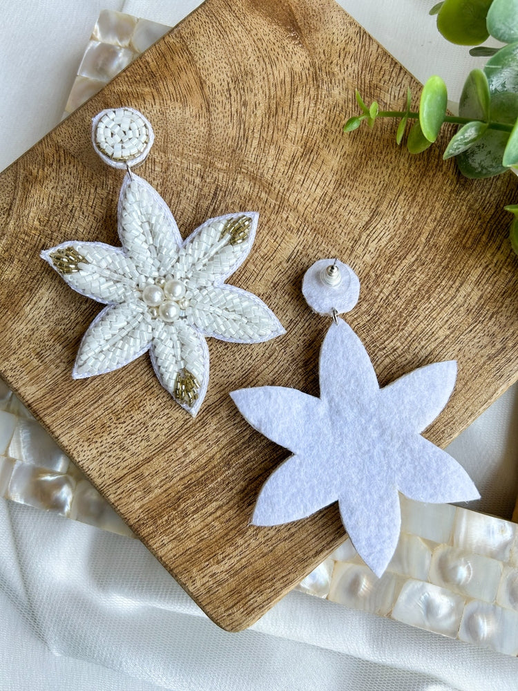 Snow Petals Handmade Beaded Flower Earrings