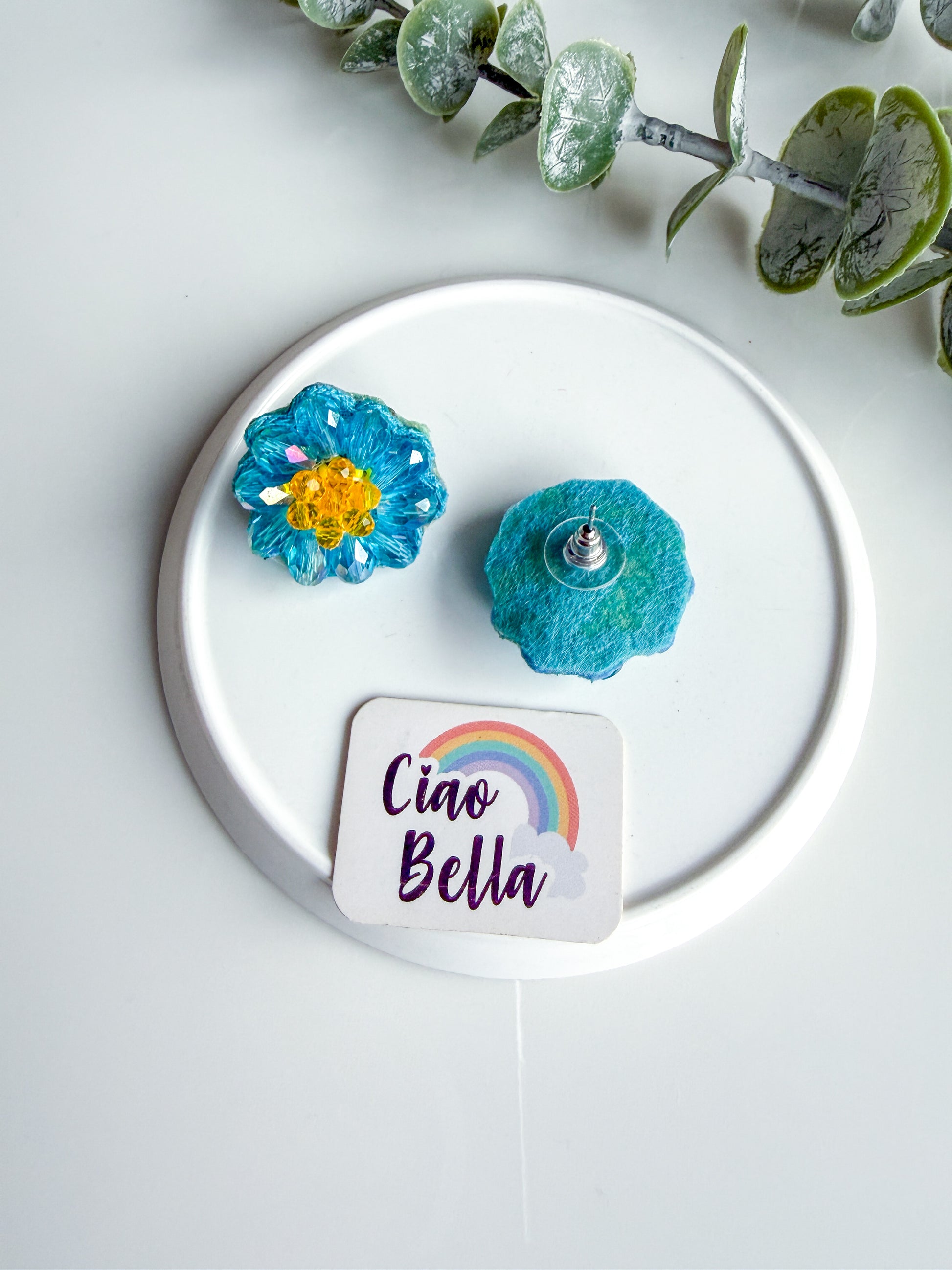 Earrings: Stud Earrings, Length: 3 CM; Width: 3 CM, Material: Beads Embroidery, Felt Backing