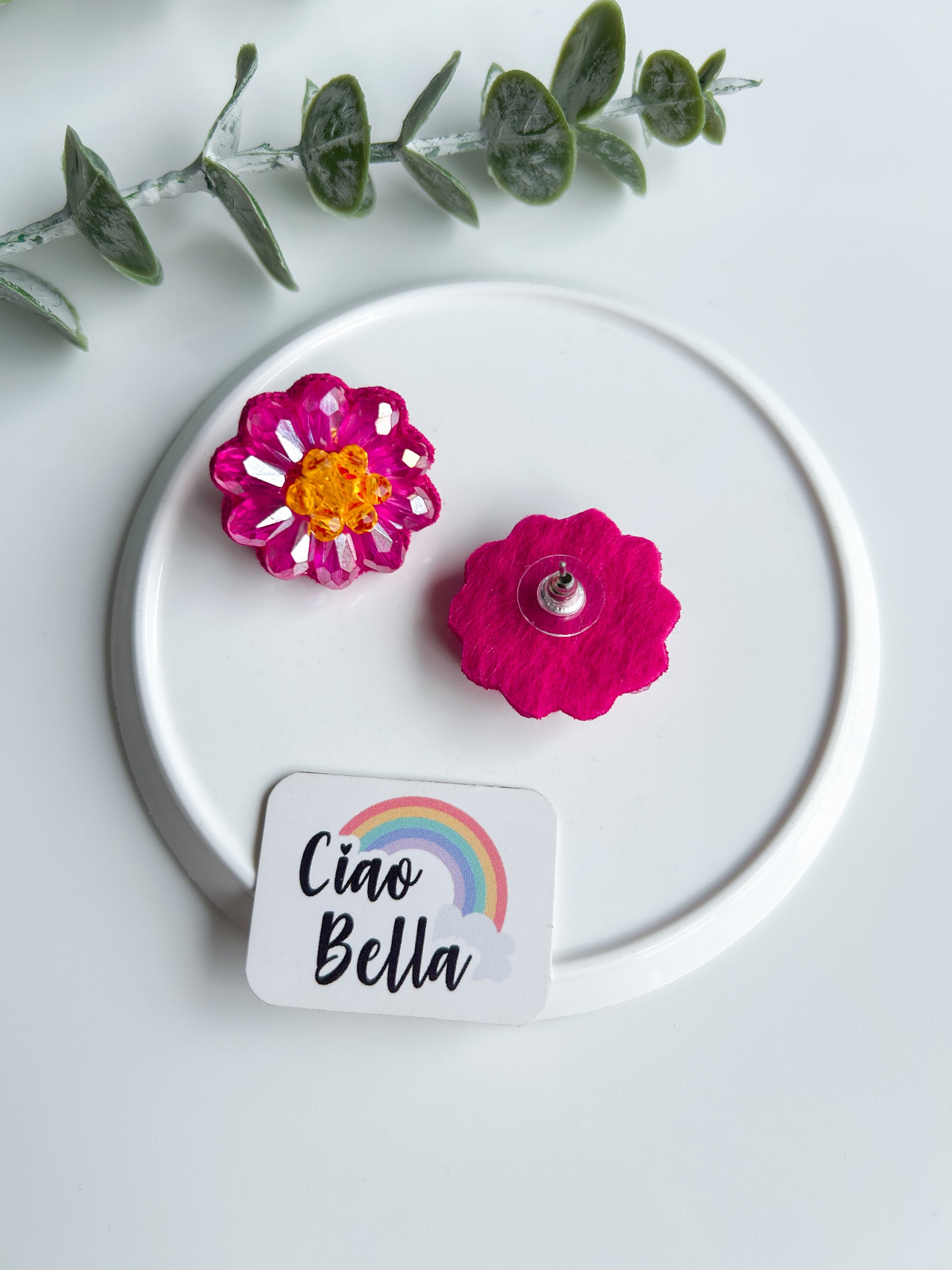 Earrings: Stud Earrings, Length: 3 CM; Width: 3 CM, Material: Beads Embroidery, Felt Backing