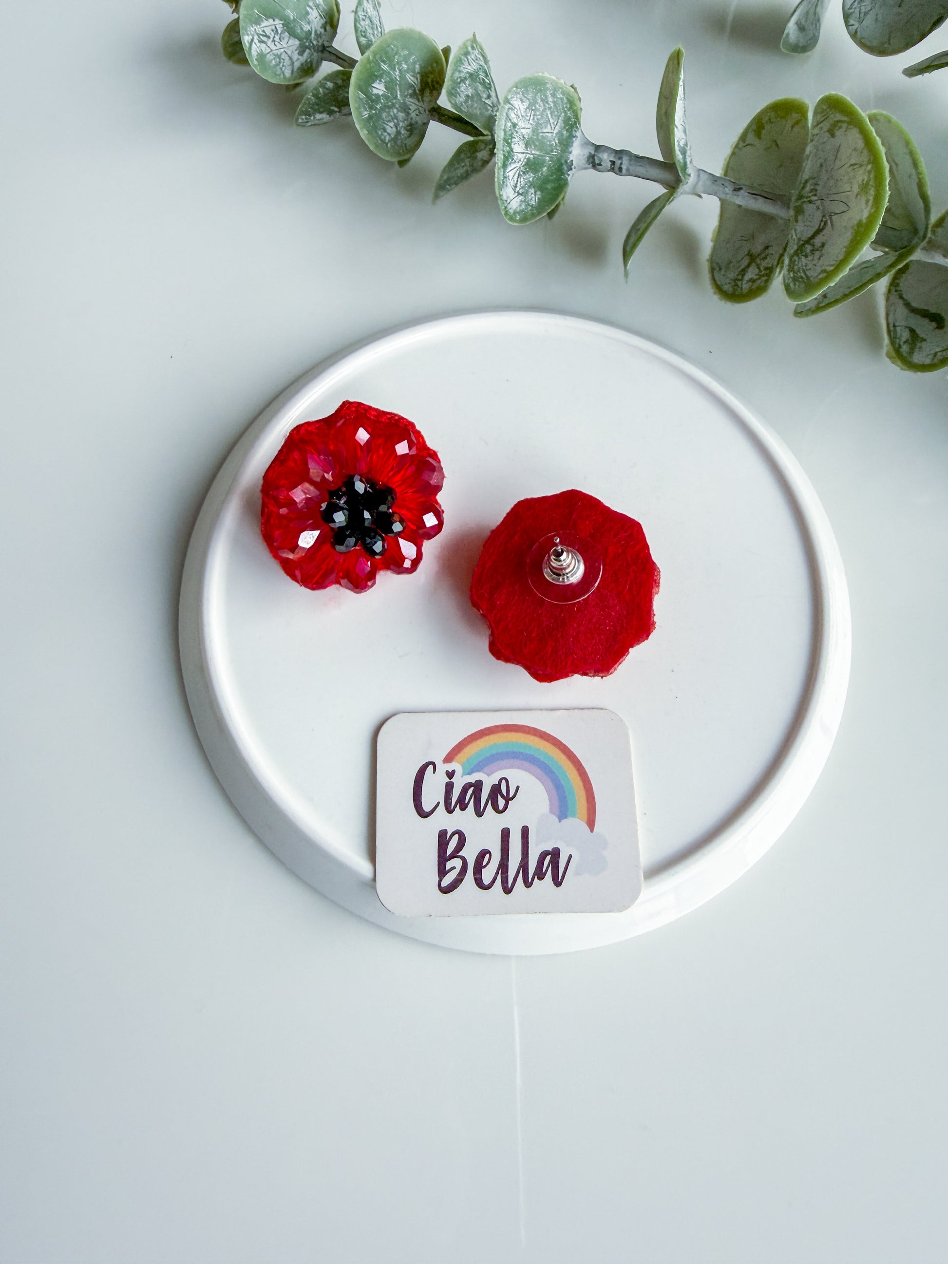 Earrings: Stud Earrings, Length: 3 CM; Width: 3 CM, Material: Beads Embroidery, Felt Backing