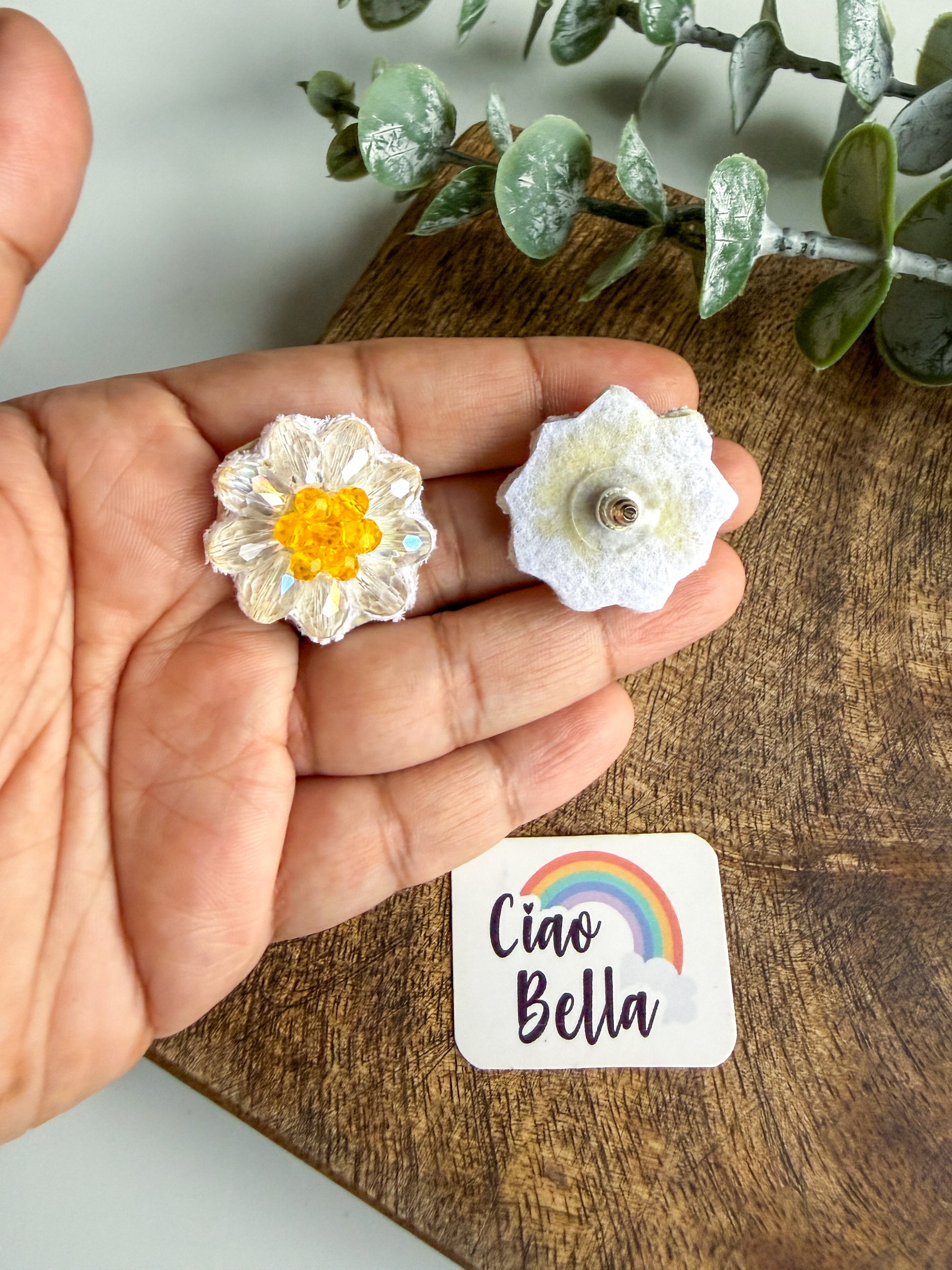 Sparkling White Daisy Handmade Beaded Necklace + Earrings Set