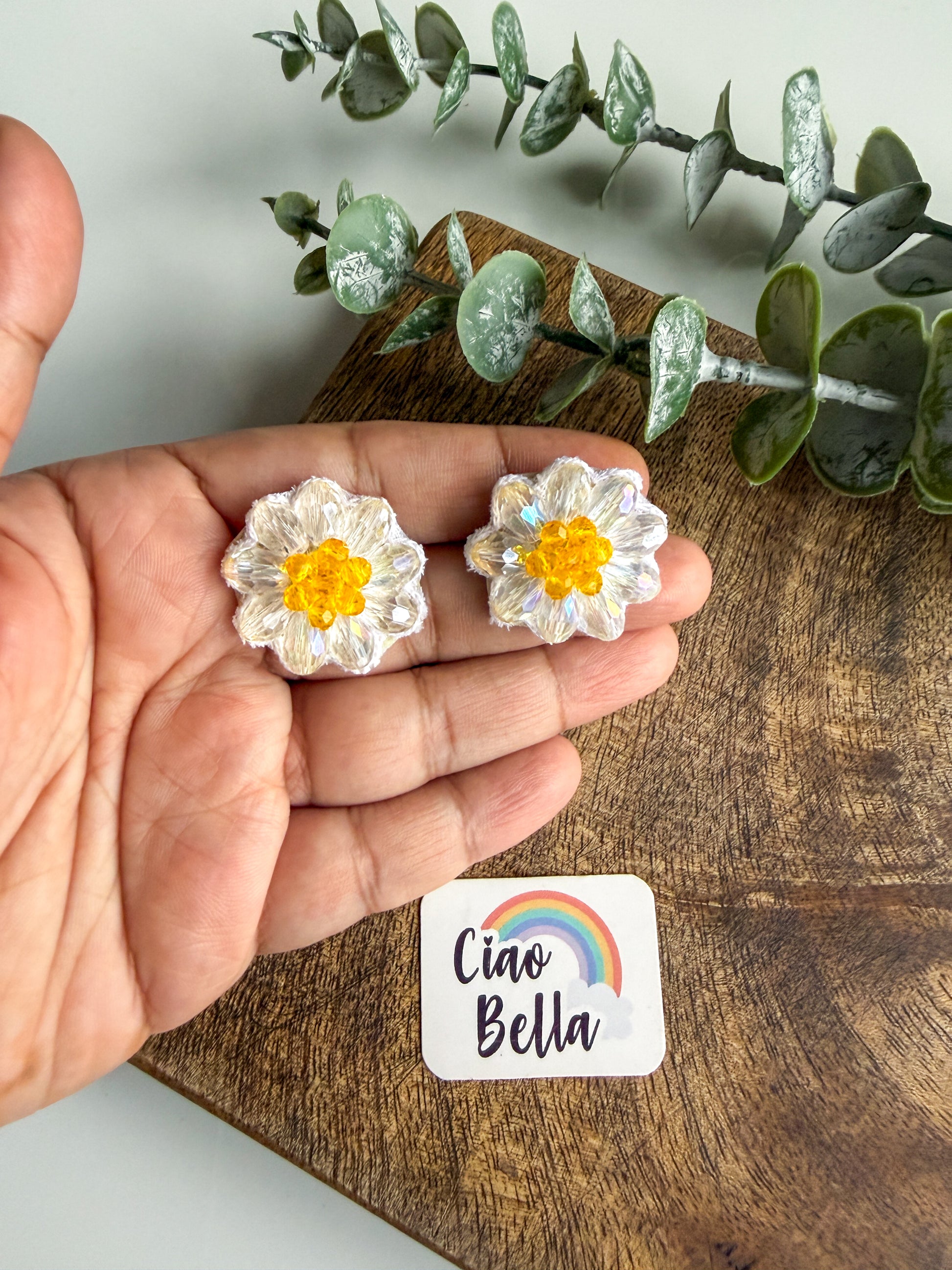 Earrings: Stud Earrings, Length: 3 CM; Width: 3 CM, Material: Beads Embroidery, Felt Backing