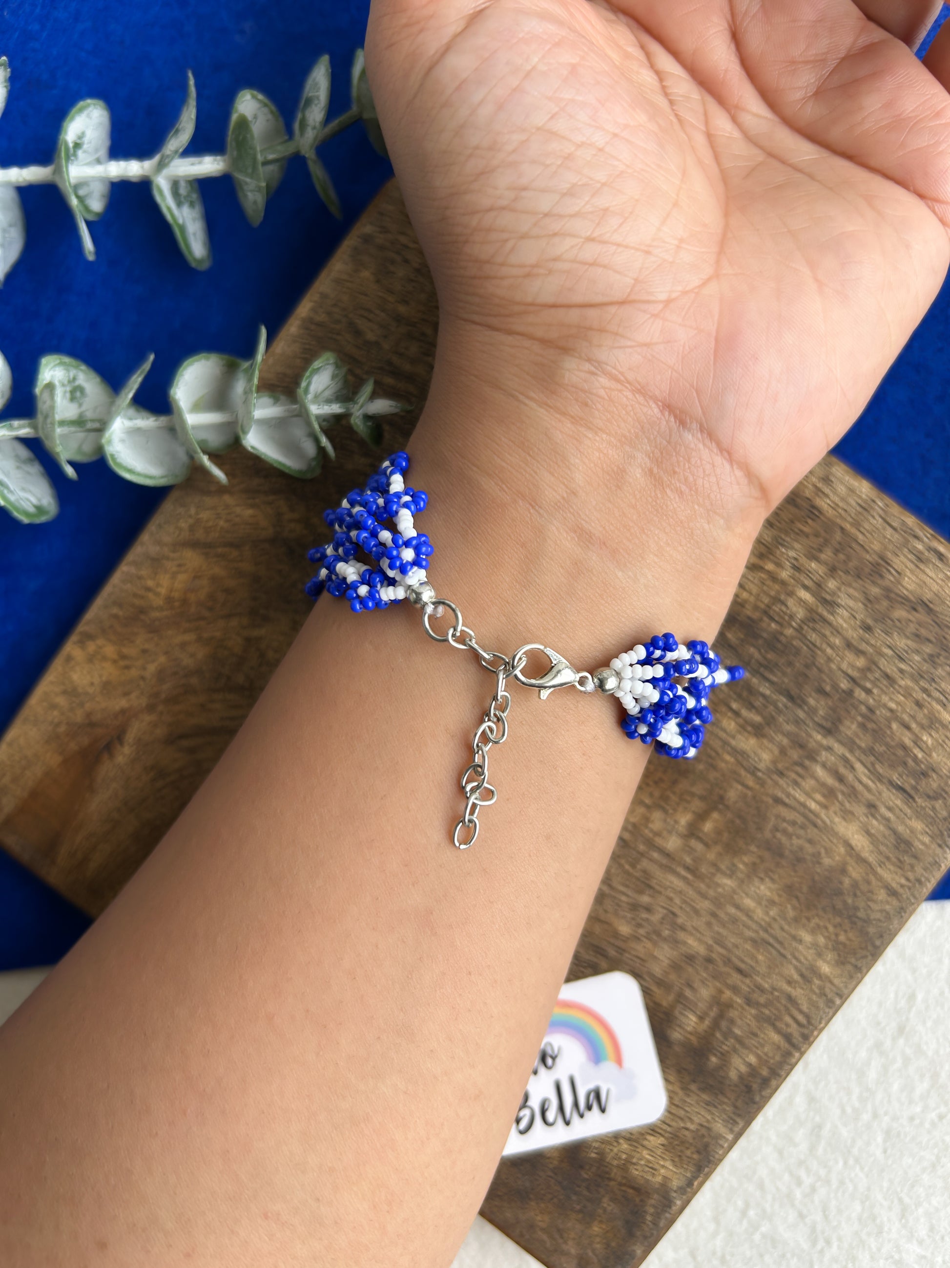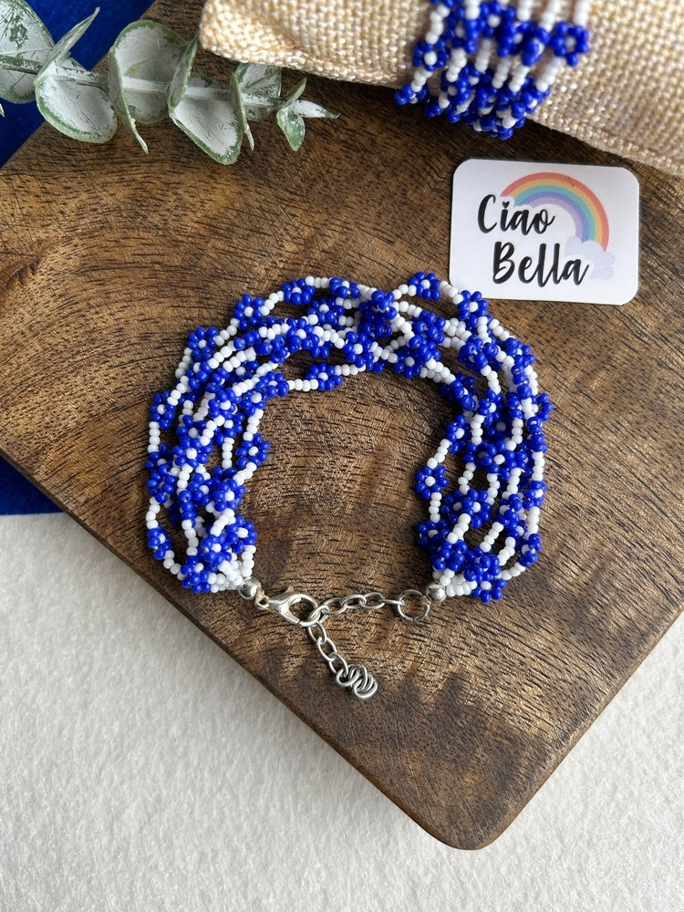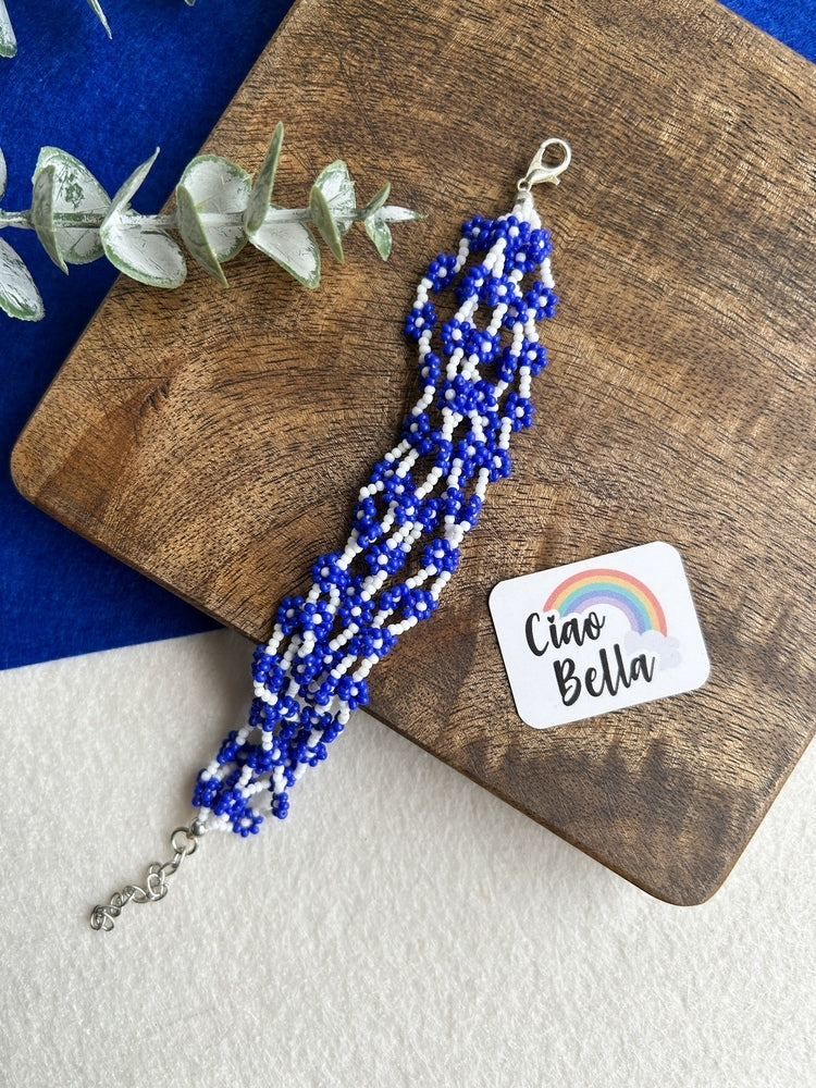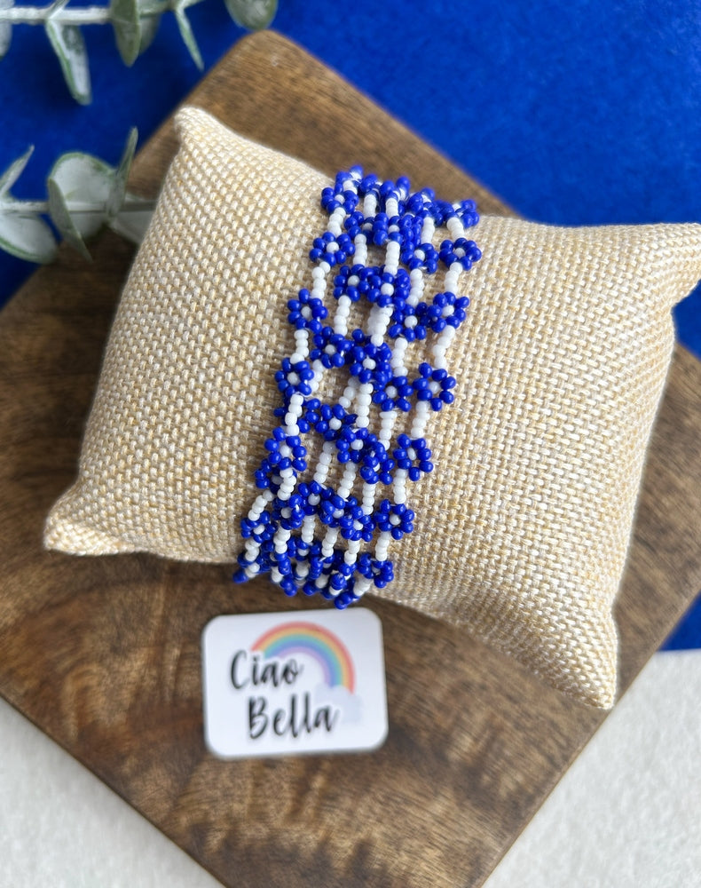 Spring Bloom Blue Daisy Handmade Beaded Bracelet