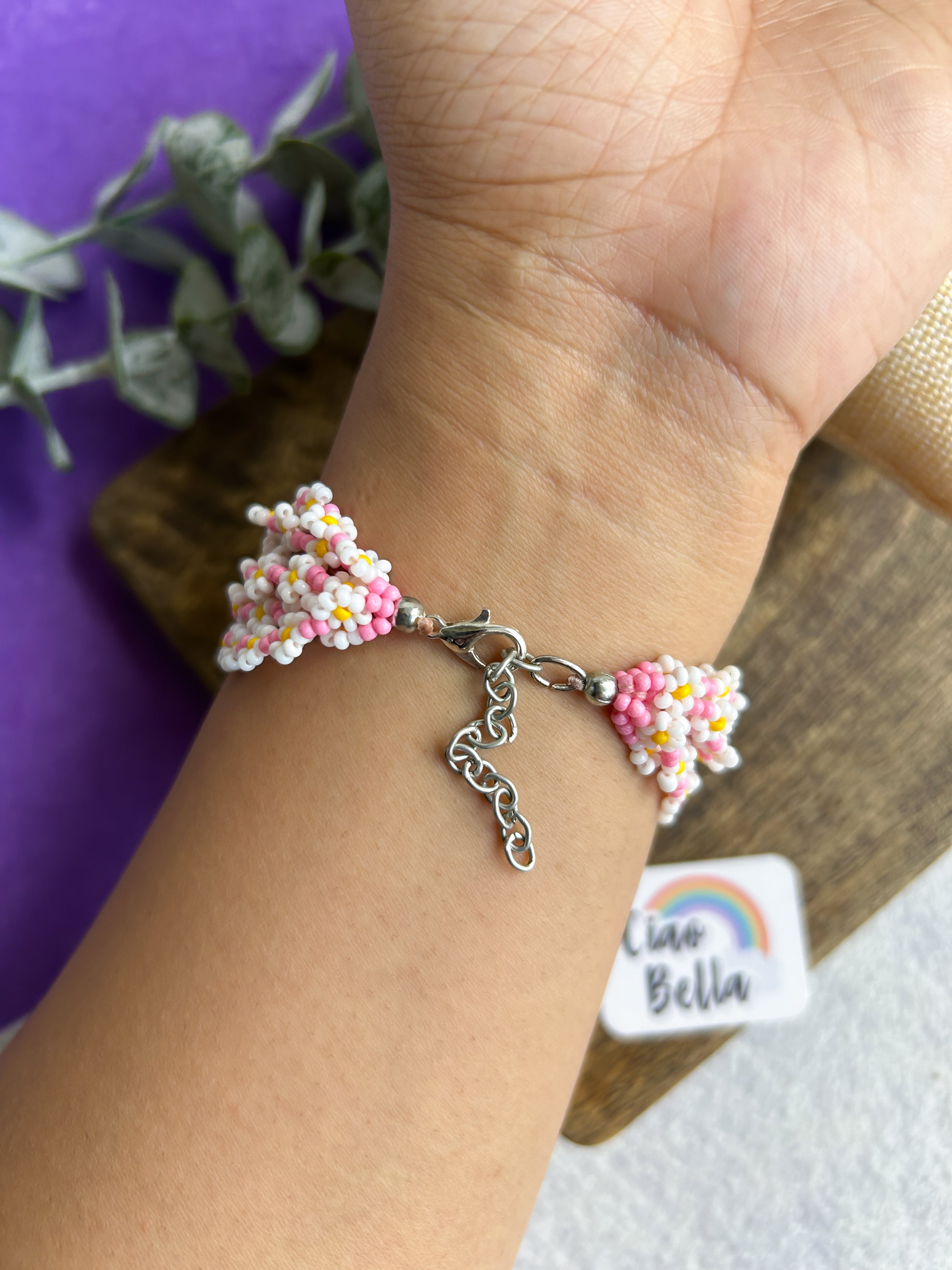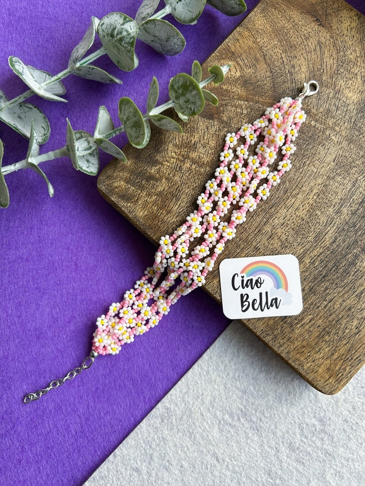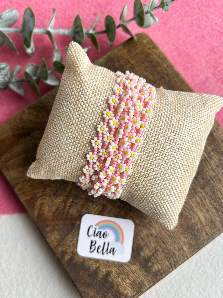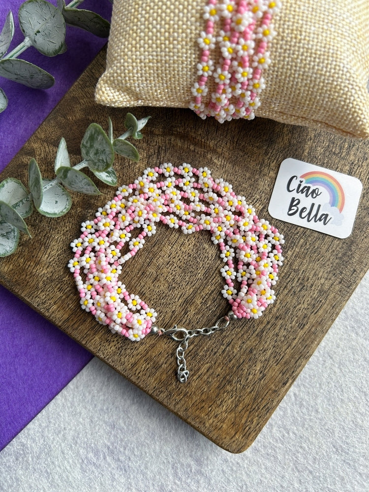 Spring Bloom Blush Pink Daisy Handmade Beaded Bracelet