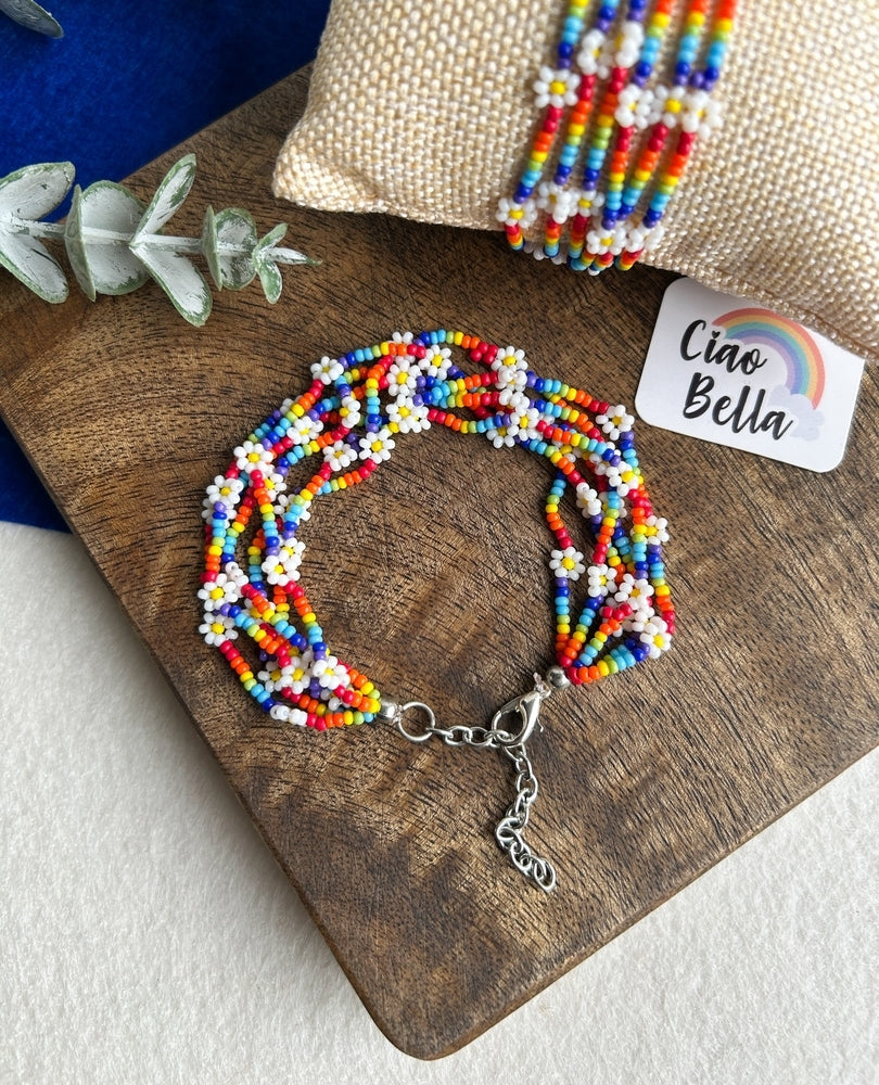 Spring Bloom Rainbow Daisy Handmade Beaded Bracelet